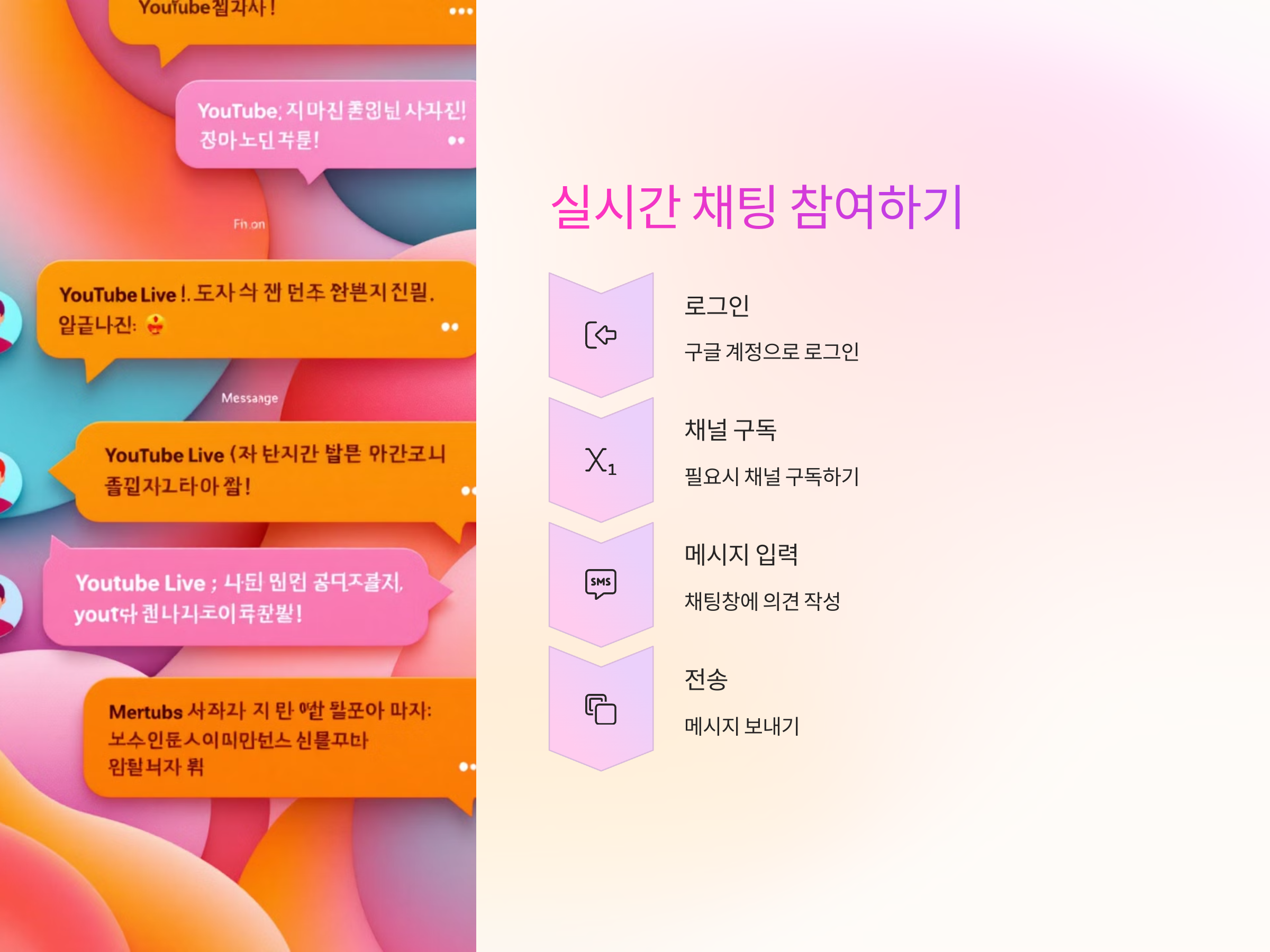 채팅창에 메시지를 입력하려면 구글 계정에 로그인해야 하며, 일부 방송에서는 채팅에 참여하기 위해 채널 구독을 요구할 수도 있습니다. 구독 후에는 바로 채팅에 참여할 수 있으니, 채널 구독 버튼을 누르는 것을 잊지 마세요.