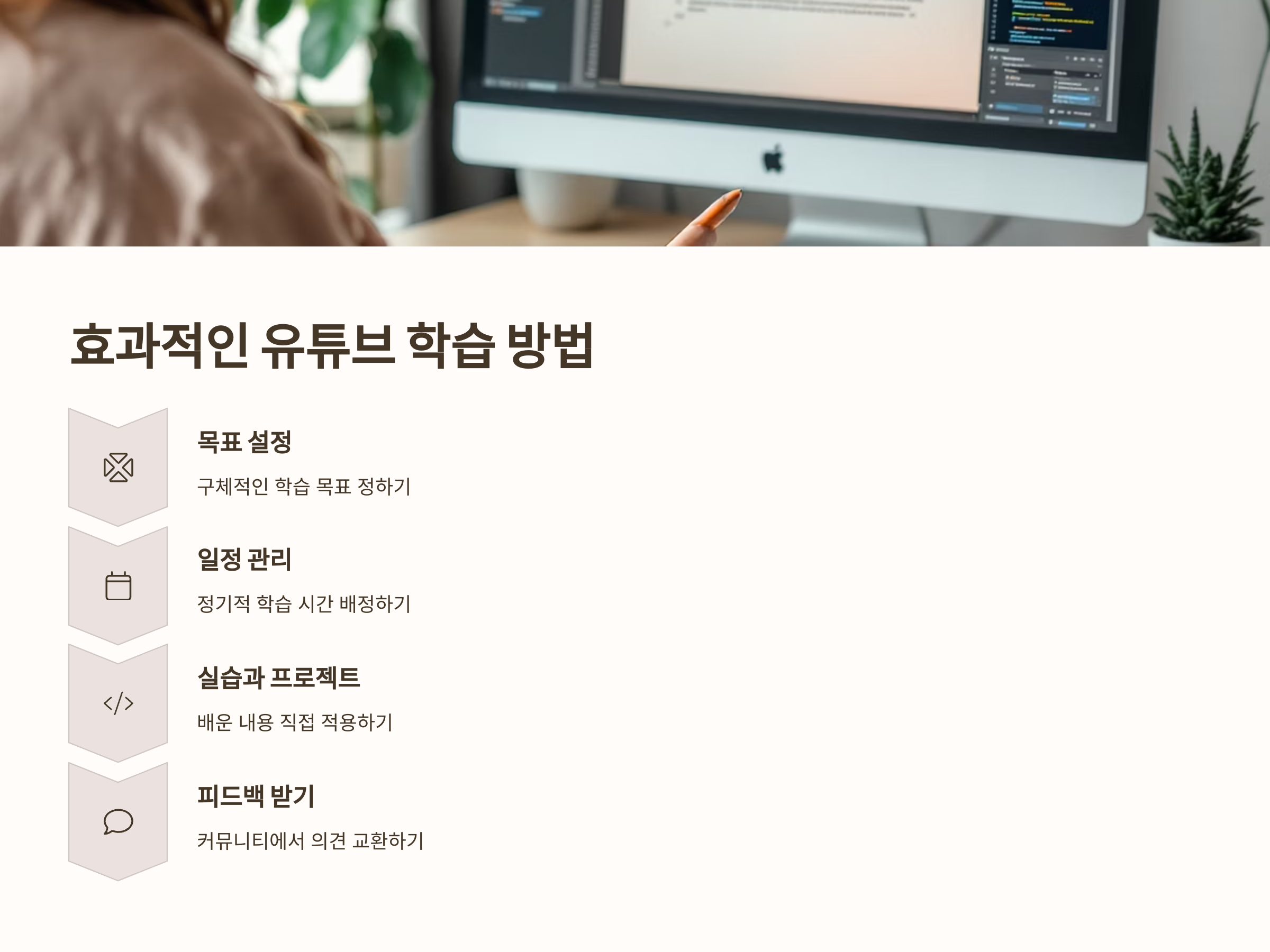 유튜브에서 강의를 듣는 것은 매우 유용하지만, 체계적으로 학습하기 위해서는 몇 가지 전략을 세울 필요가 있습니다. 효과적으로 학습하려면 다음과 같은 방법을 시도해 보세요.
