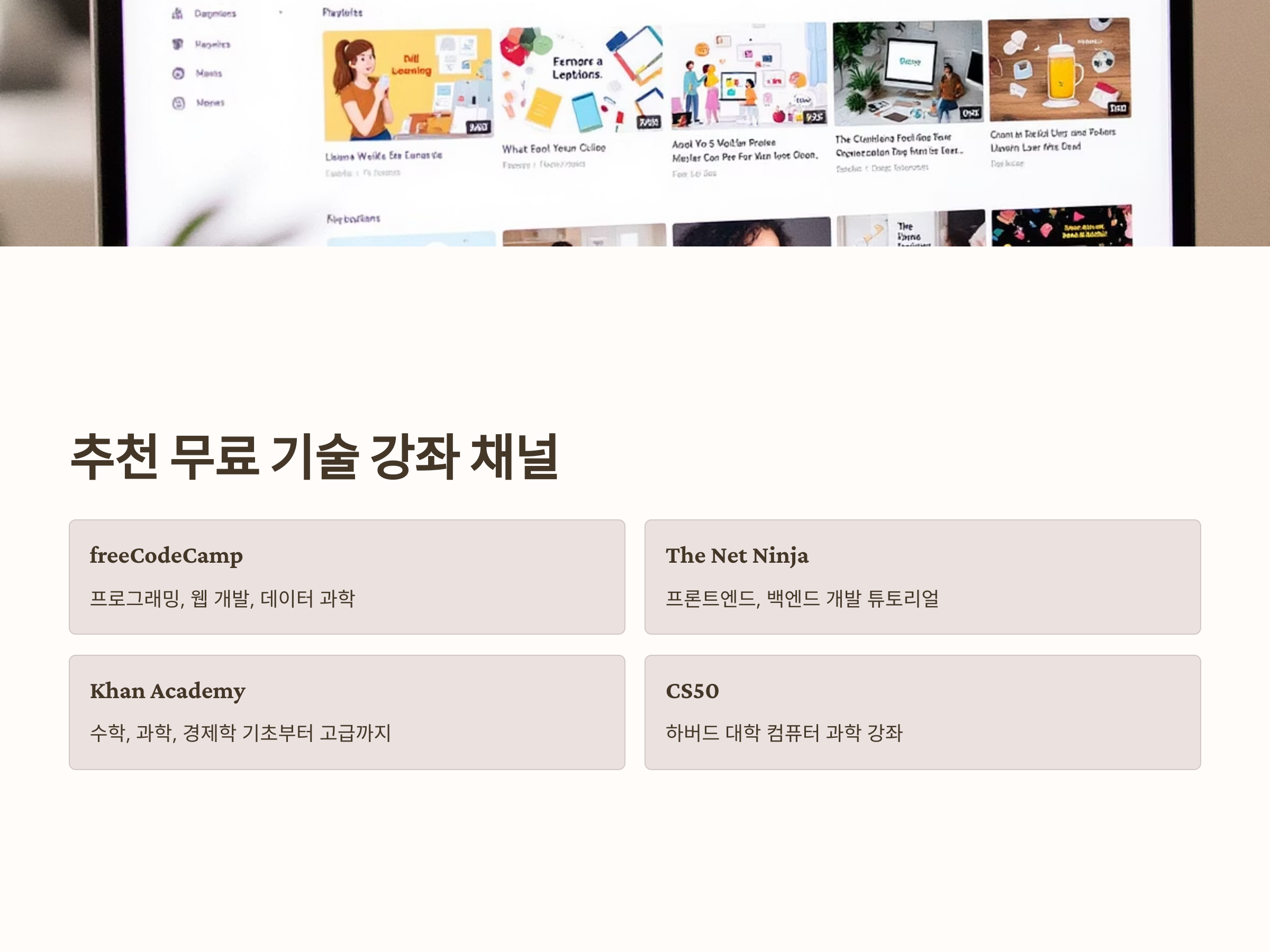 유튜브에서 추천하는 무료 기술 강좌 채널