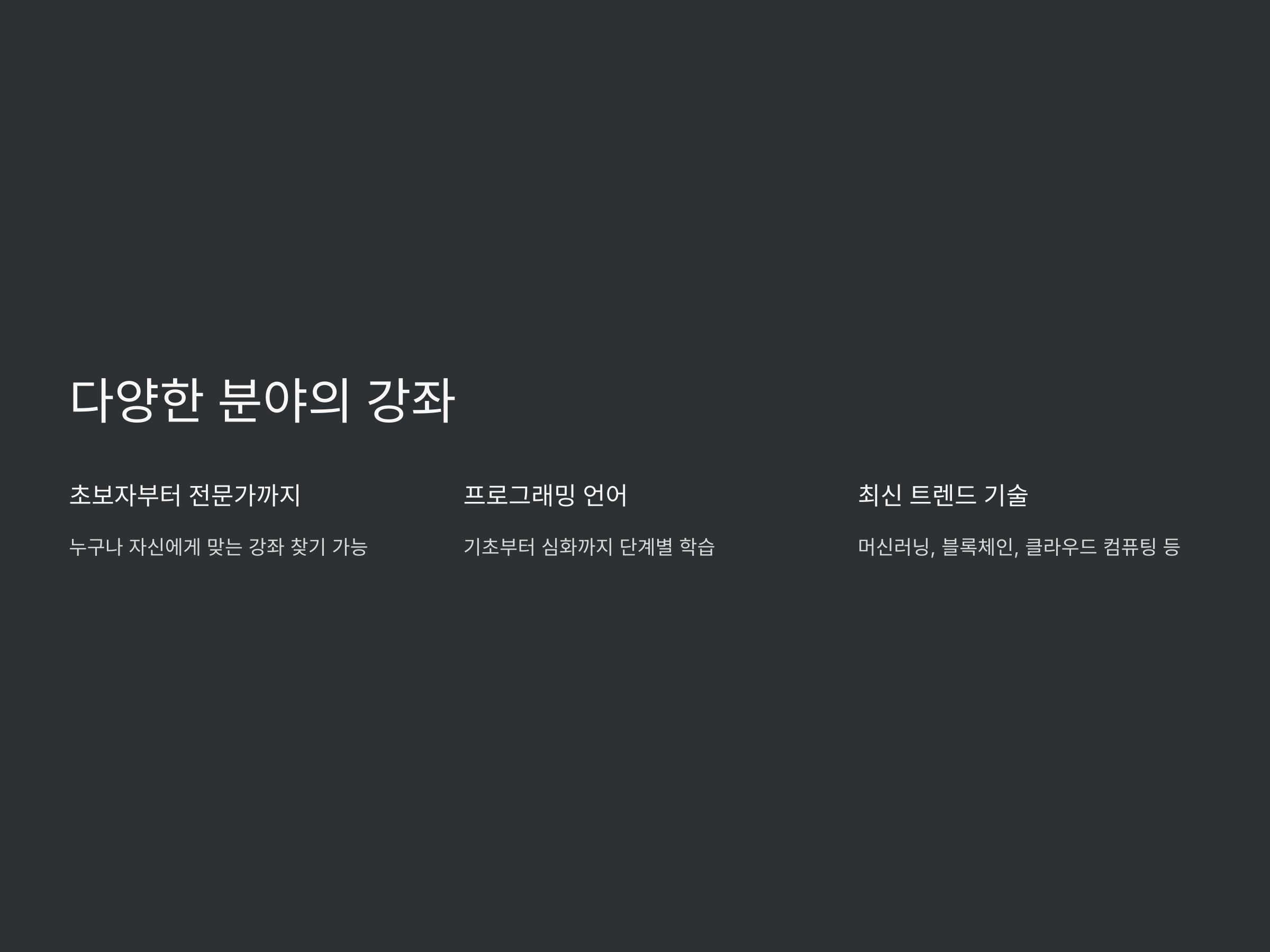 유튜브에서 제공하는 강좌는 단순히 한두 가지 분야에 국한되지 않습니다. 초보자부터 전문가까지, 누구나 자신에게 맞는 강좌를 쉽게 찾을 수 있습니다. 예를 들어, 프로그래밍 언어에 대한 기초부터 심화까지의 강좌는 물론, 최신 트렌드인 머신러닝, 블록체인, 클라우드 컴퓨팅 등에 대한 강좌도 다양하게 존재합니다. 검색창에 원하는 기술을 입력하면 관련된 많은 영상들이 나타나며, 이를 통해 학습할 수 있습니다.