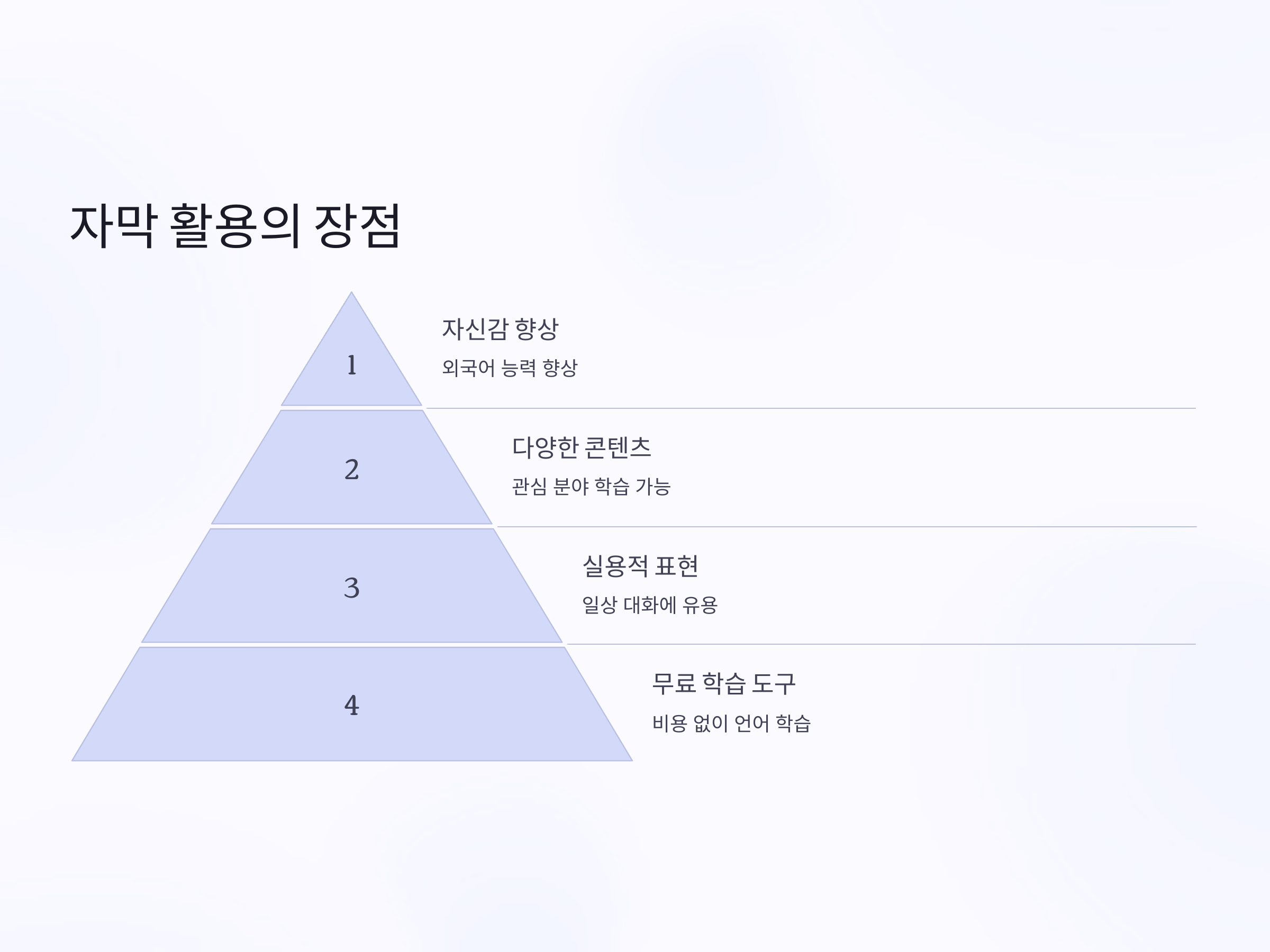 언어를 학습하면서, 자막을 통해 발음이나 문법적인 부분을 참고하고, 자연스러운 문장을 만드는 법을 배우는 데 큰 도움이 됩니다.