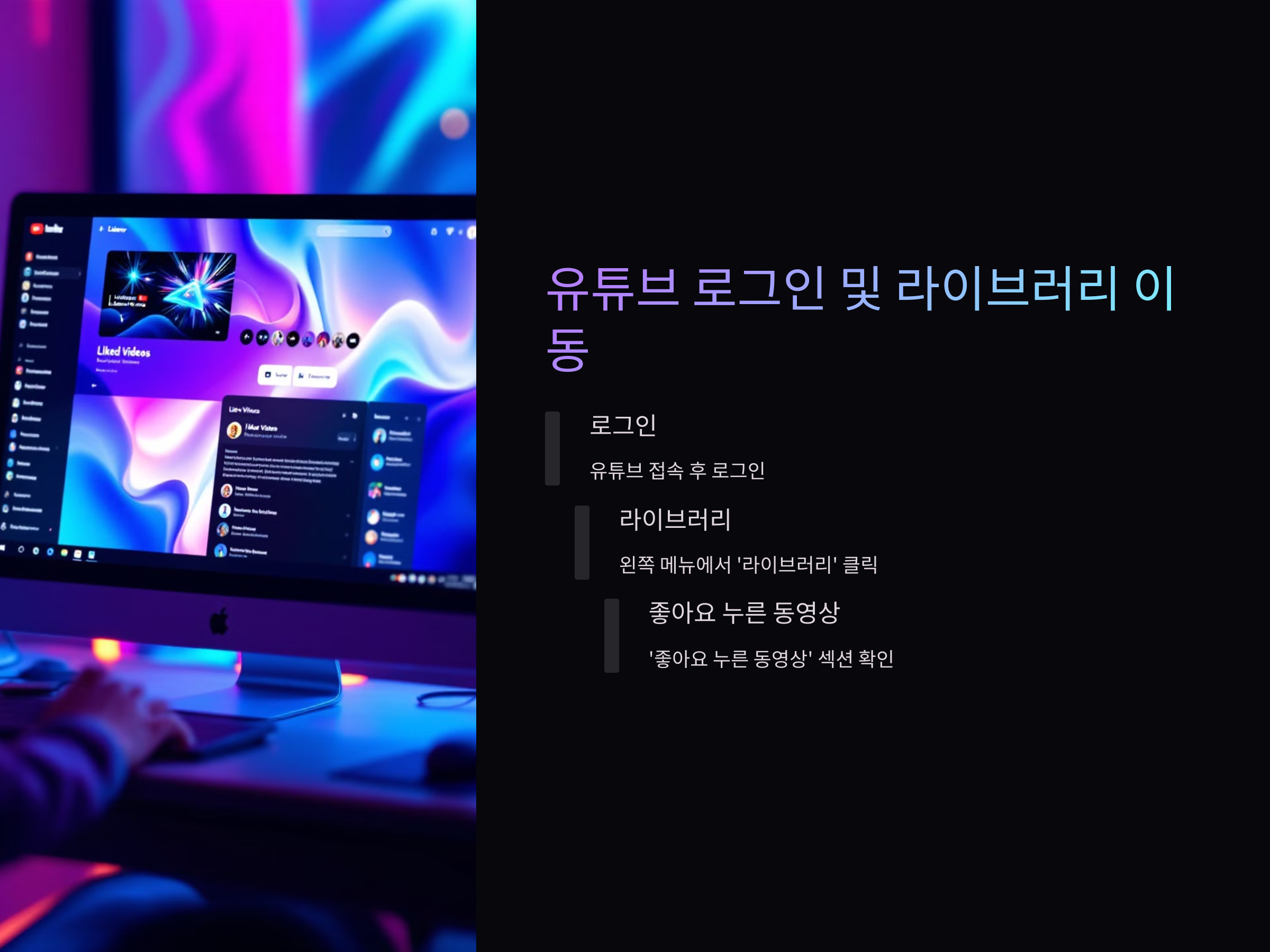 유튜브 로그인 후 '라이브러리'로 이동하기