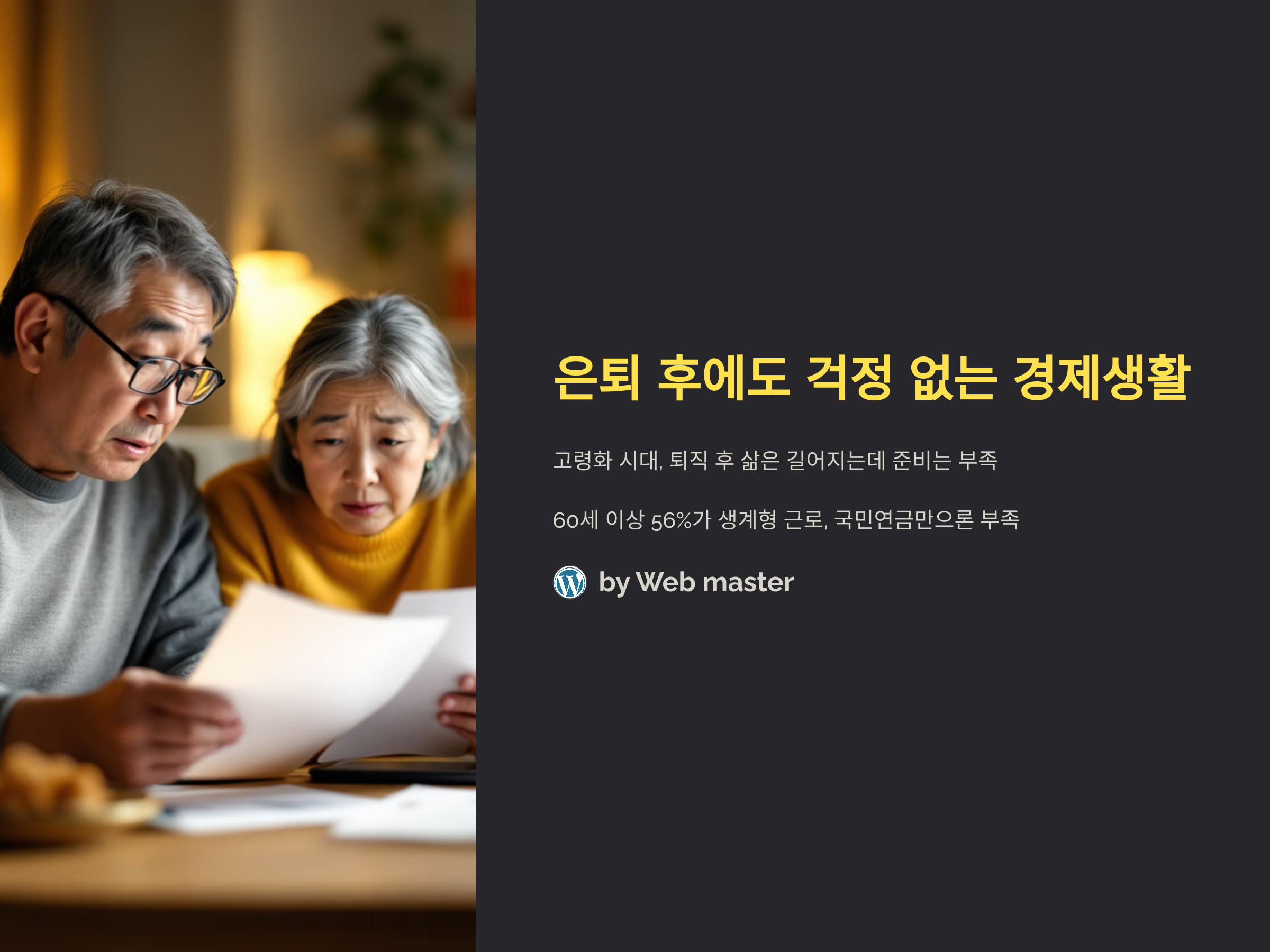 고령화 시대에 접어들면서 퇴직 후의 삶은 점점 길어지고 있습니다. 하지만 많은 사람들이 퇴직 이후의 경제적 준비가 부족해 불안감을 안고 살아가고 있죠. 최근 통계에 따르면, 60세 이상 고령층의 56%가 여전히 생계를 위해 일을 하고 있으며, 국민연금만으로는 생활이 어렵다는 응답이 70%를 넘어섰습니다. 이러한 현실 속에서 퇴직 후에도 안정적인 경제생활을 영위하기 위한 전략이 필수입니다. 본 포스팅에서는 현재의 금융 트렌드와 함께, 퇴직 후에도 안정적인 소득을 창출하고 지출을 관리하는 방법, 국가와 지자체에서 제공하는 혜택을 활용하는 실질적인 가이드를 제공합니다. 더불어 2025년부터 확대되는 퇴직연금 제도 개편과 고령자 일자리 확대 정책도 소개하여, 여러분이 은퇴 후에도 더 나은 삶을 누릴 수 있도록 돕겠습니다.