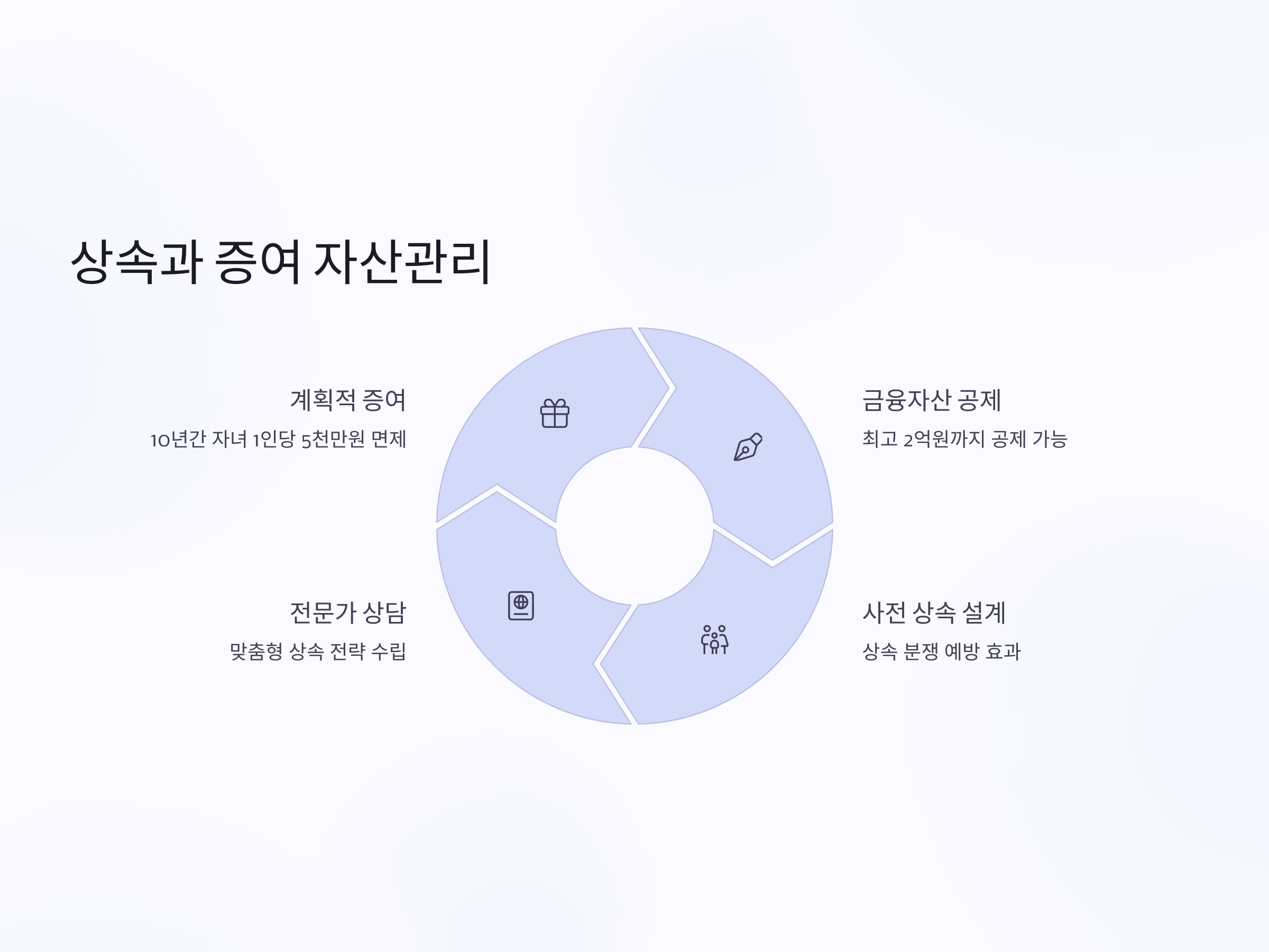 예를 들어, 10년간 자녀 1인당 5천만 원까지 증여세가 면제되므로 이를 활용한 정기적인 자금 이전이 가능합니다. 또한 상속 시 공제되는 금융자산은 요건을 충족하면 최고 2억 원까지 공제받을 수 있어 유리합니다. 전문가와 함께하는 사전 상속 설계는 상속 분쟁 예방에도 큰 역할을 합니다.