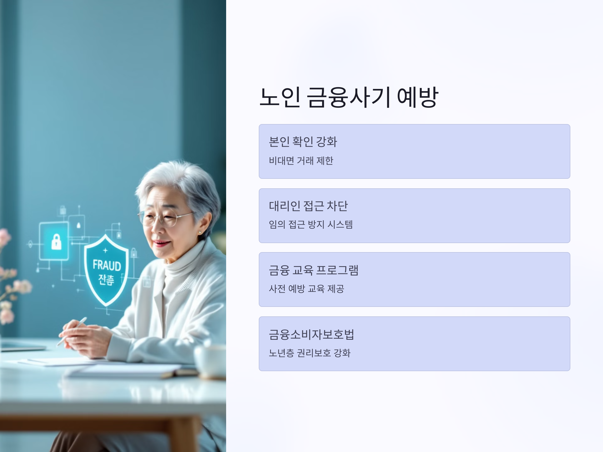 예컨대, 본인 확인이 어려운 경우 비대면 거래 제한, 대리인의 임의 접근 차단 등의 장치가 마련되었고, 고령자 금융 교육 프로그램을 통해 사전 예방 교육도 제공되고 있습니다. 또한, ‘금융소비자보호법’의 적용 범위가 확대되면서 노년층을 위한 권리보호가 더욱 강화되고 있습니다.