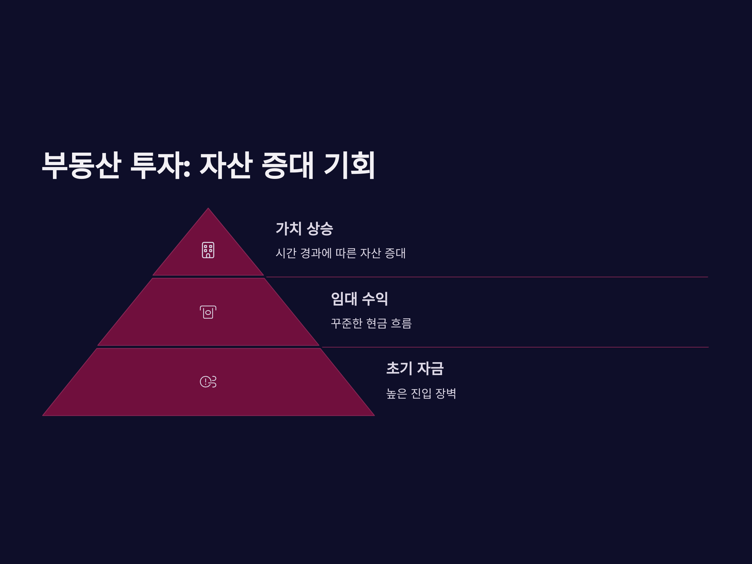 부동산 투자는 장기적인 자산 증대의 기회를 제공할 수 있는 매력적인 투자처입니다. 주택이나 상업용 부동산에 투자하면 시간이 지남에 따라 가치 상승을 기대할 수 있습니다. 또한, 임대료 수익을 통해 꾸준한 현금 흐름을 얻을 수 있다는 장점이 있습니다.