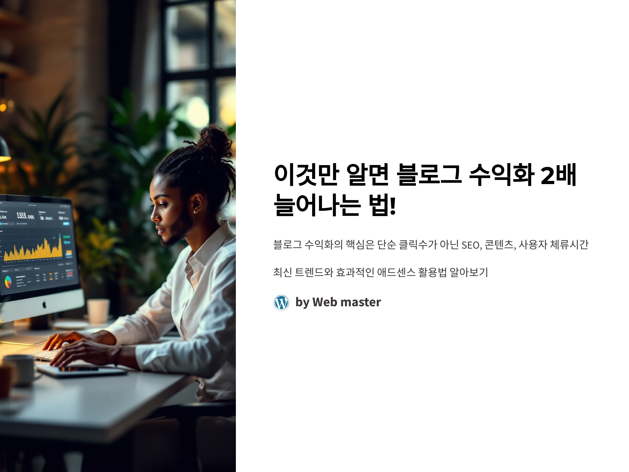 최근 블로그를 통한 수익화가 중요해진 가운데, 구글 애드센스에서의 성과를 최적화하고자 하는 사람들의 관심이 급증하고 있습니다. 수익화의 핵심은 단순히 클릭 수를 높이는 것만이 아닙니다. 정확한 SEO 최적화, 독창적인 콘텐츠 구성, 그리고 사용자가 글에 오래 머무르게 만드는 전략이 중요합니다. 이 글에서는 수익화 전략을 강화하는 데 도움이 될 최신 트렌드와 변화를 소개하며, 애드센스를 통해 최대한 많은 수익을 올리는 방법을 다룹니다. 이 글을 통해 블로그의 수익을 급격히 증가시킬 수 있는 전략을 알아보세요!