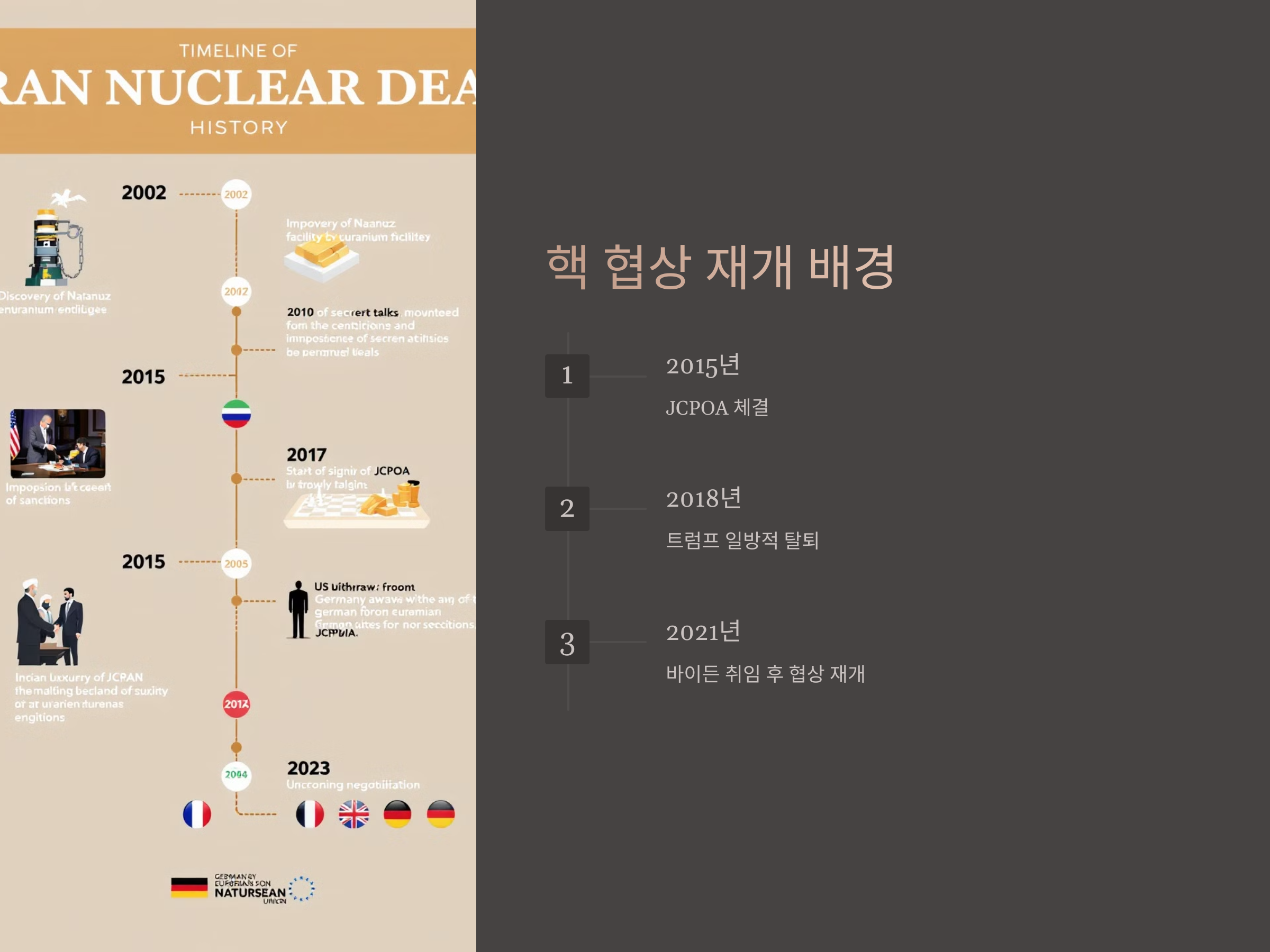 이란 핵 협상의 재개는 수년간의 교착 상태를 종식시키고자 하는 국제 사회의 노력의 일환입니다. 2015년에 체결된 JCPOA는 이란이 핵 개발을 제한하는 대신 경제 제재를 완화하는 조건으로 성립되었습니다. 하지만 2018년 미국의 도널드 트럼프 대통령이 일방적으로 협정에서 탈퇴하면서 협상은 중단되었습니다. 이란은 이후 핵 활동을 확장하며, 국제 사회는 이란의 행동을 두고 심각한 우려를 표명했으며, 제재는 더욱 강화되었습니다.
