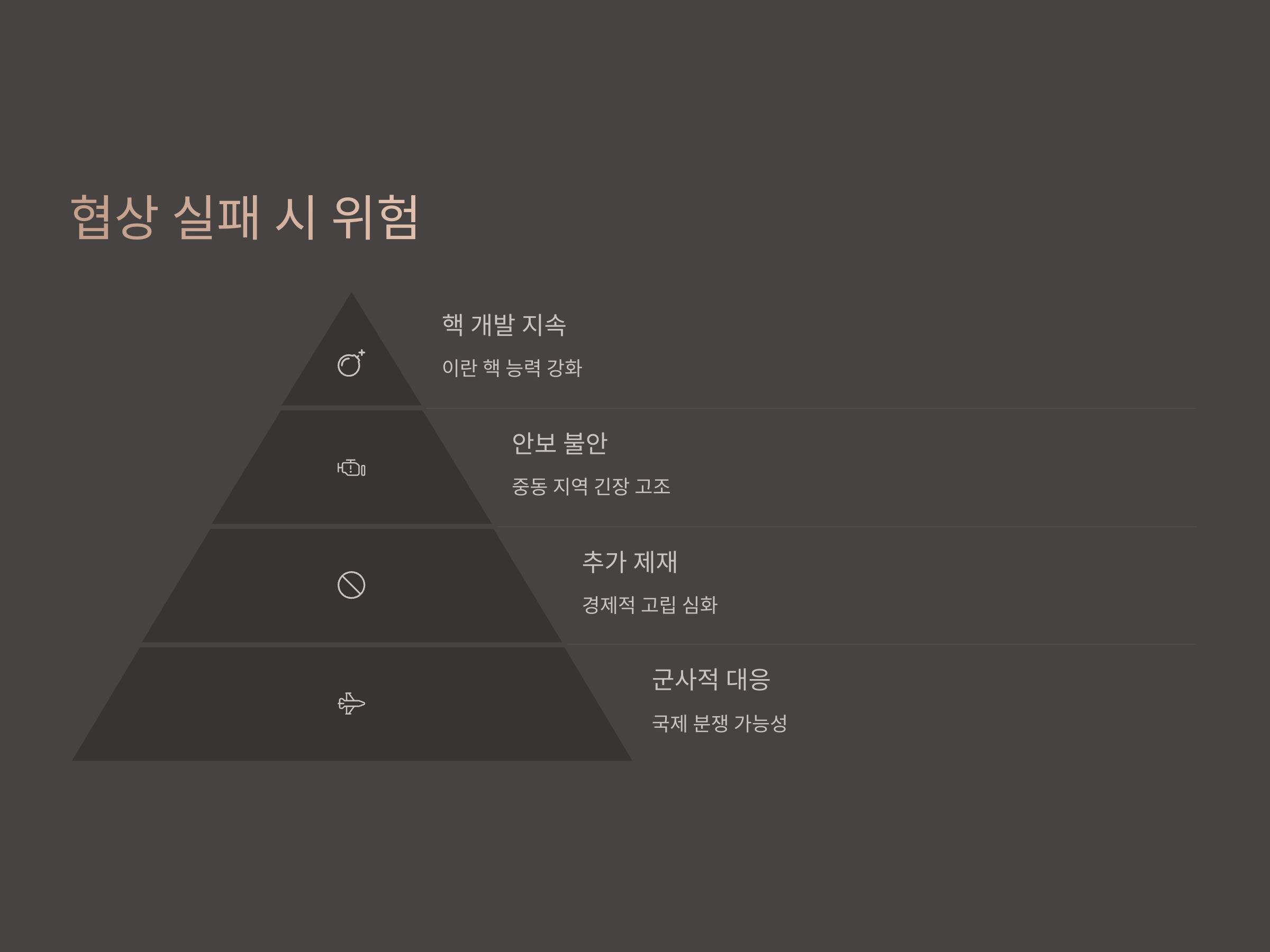 그러나 협상이 실패하거나 중단된다면, 이란의 핵 개발이 계속될 가능성이 있으며, 이는 중동의 안보 불안을 더욱 악화시킬 수 있습니다. 또한, 국제 사회는 추가적인 제재나 군사적 대응을 고려할 수 있습니다. 따라서 이번 협상은 중동의 미래뿐만 아니라, 국제 사회의 안정성에 큰 영향을 미칠 것으로 예상됩니다.