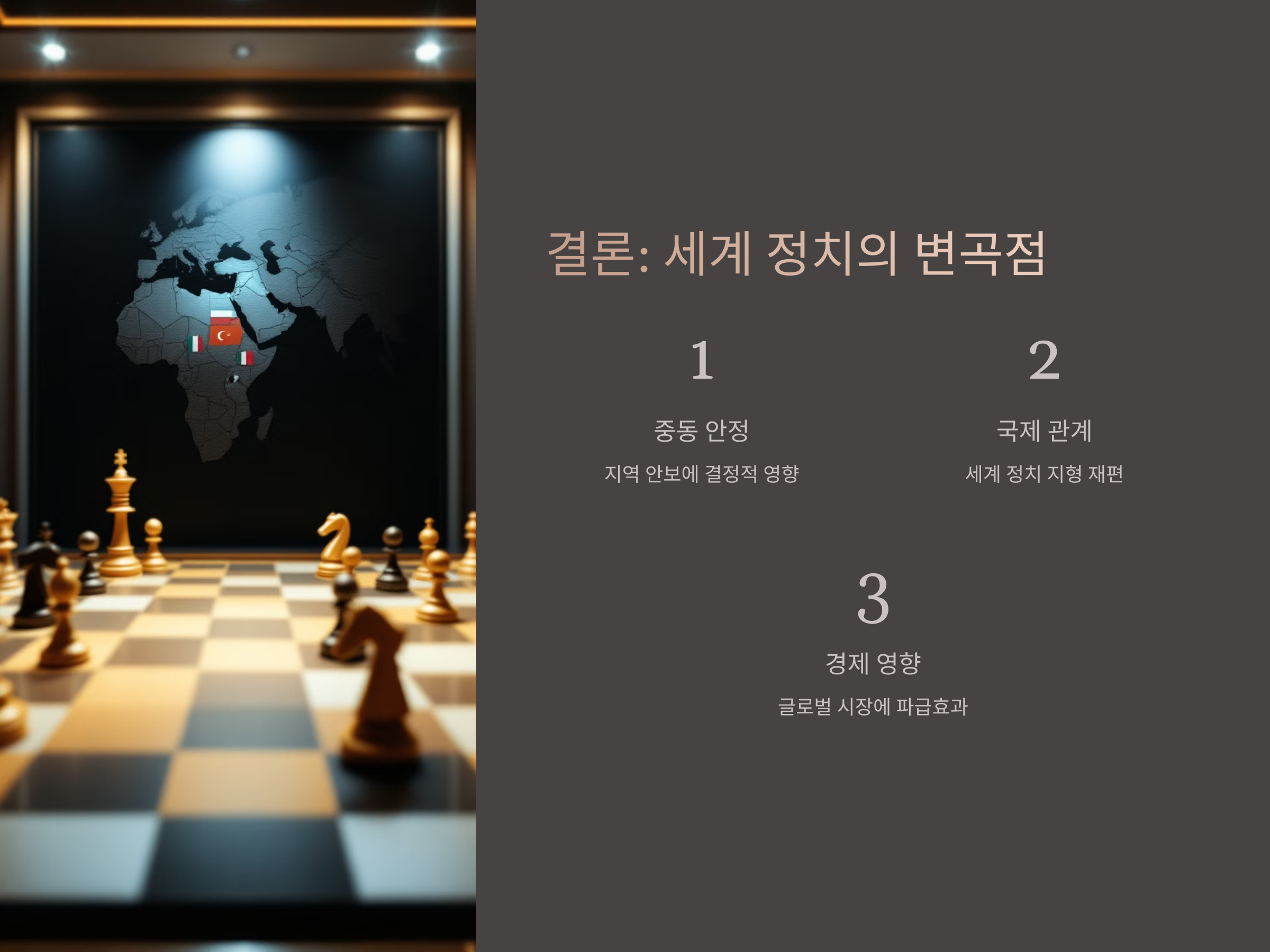 이란 핵 협상이 재개되면서, 중동 지역과 세계 정치에 미치는 영향은 매우 클 것입니다. 협상이 성공적으로 진행될 경우, 이란과 서방 국가들 간의 갈등은 완화될 수 있으며, 중동 지역의 불안정성도 다소 해소될 가능성이 있습니다. 또한, 이란 경제의 회복은 세계 경제에도 긍정적인 영향을 미칠 것입니다.