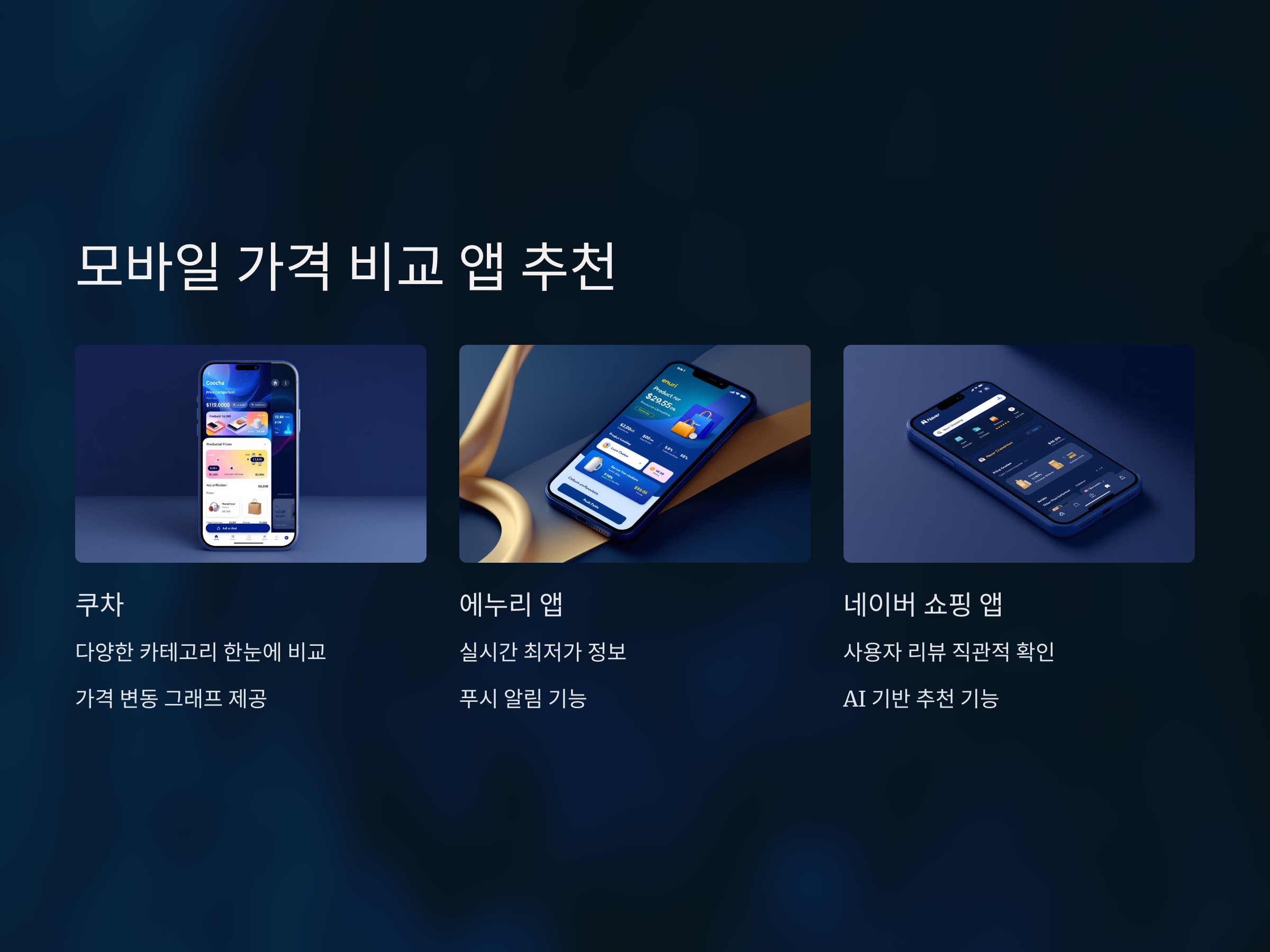 스마트폰 사용자라면 앱 기반 가격 비교 도구는 필수입니다. 대표적으로 '쿠차', '에누리 앱', '다나와 모바일', '네이버 쇼핑 앱' 등이 있으며, 이들은 웹보다 더 빠른 속도로 최저가 검색과 비교 기능을 제공합니다.