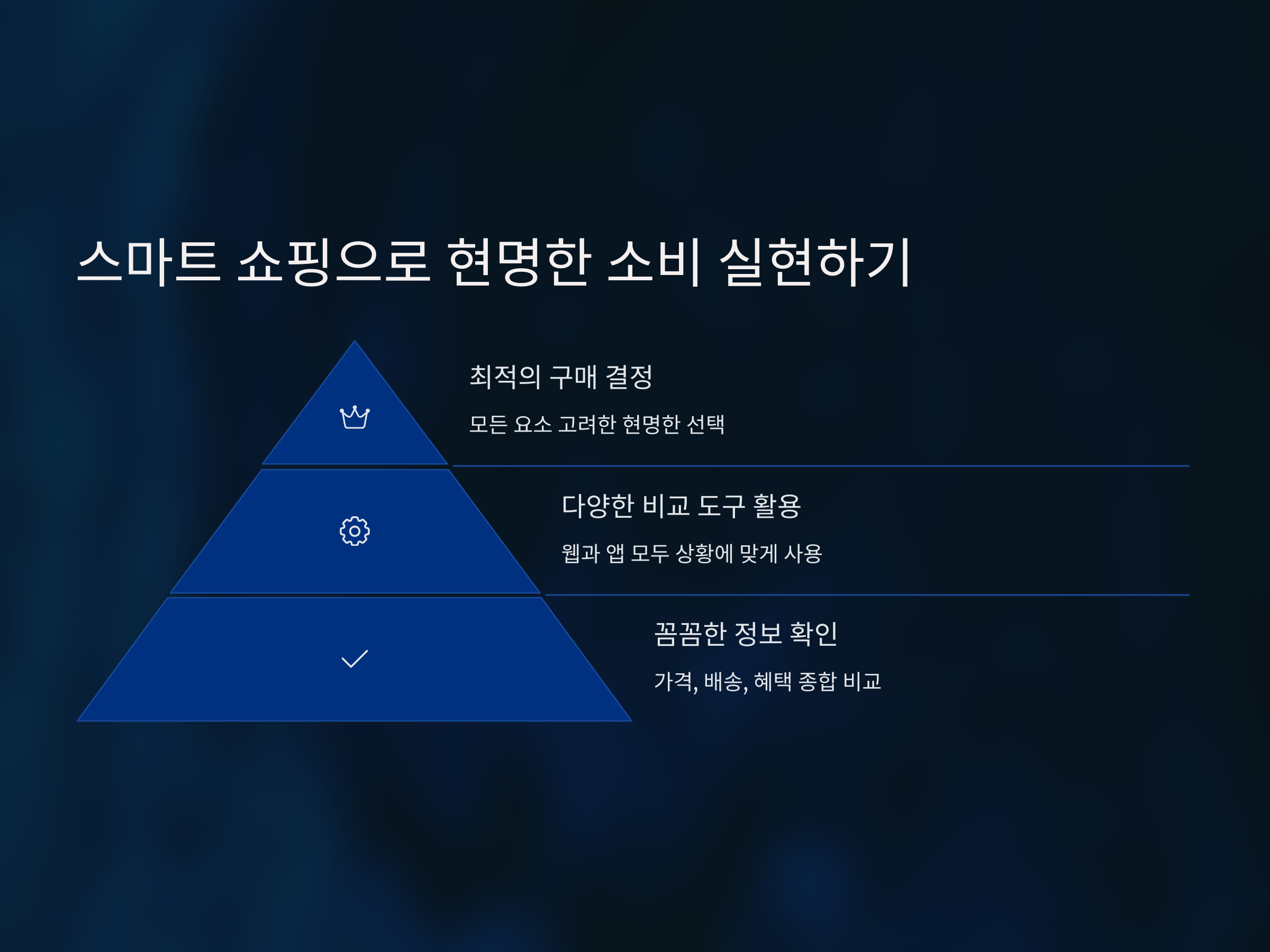 앱을 통한 가격 비교는 이동 중에도 구매 결정을 내릴 수 있게 하며, 푸시 알림을 통해 실시간 최저가 정보를 제공받을 수 있다는 점에서 매우 유용합니다. 자주 구매하는 품목이 있다면 앱 내 즐겨찾기 기능을 활용해보세요.