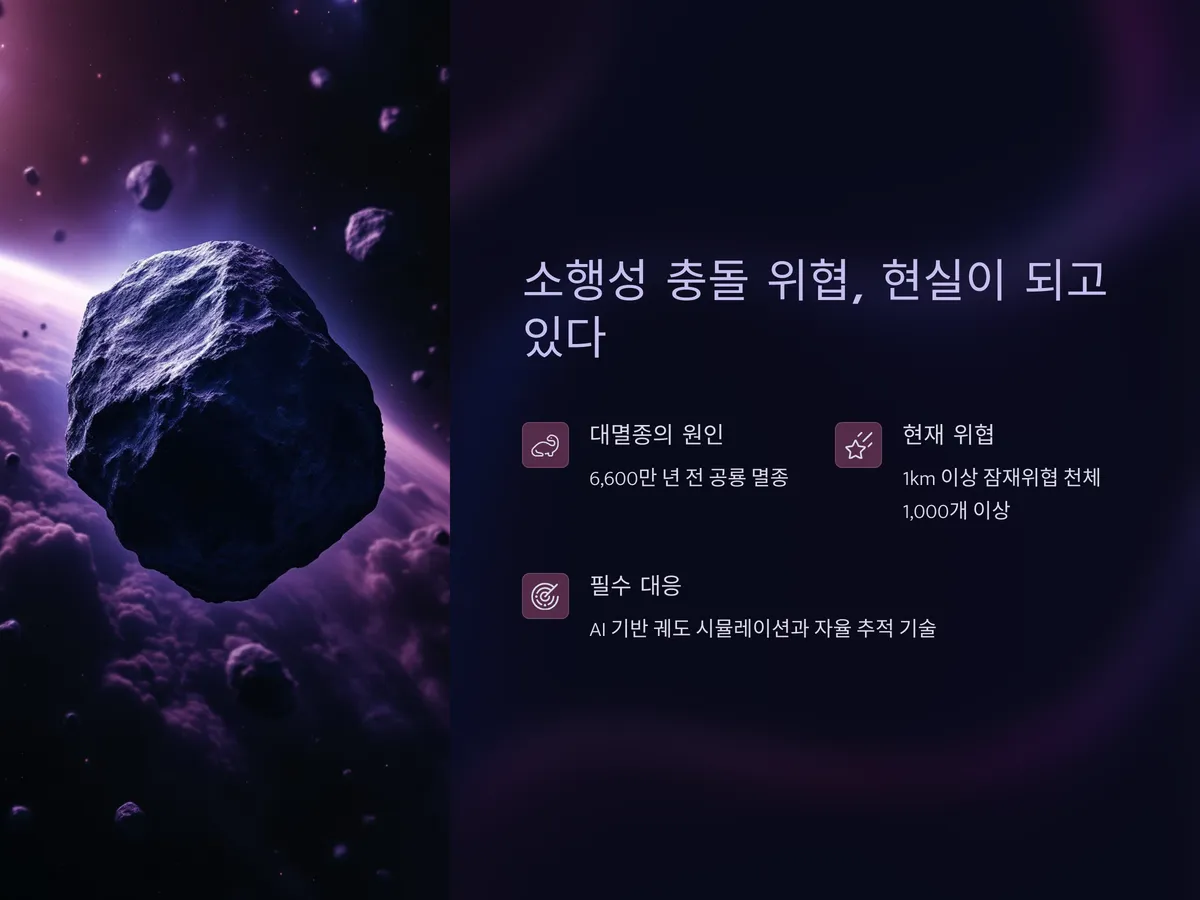 소행성은 무작위로 날아오는 것이 아니다. 대부분 태양 주위를 도는 궤도에서 중력 간섭을 통해 불안정한 경로로 진입하게 된다. 때문에 AI 기반의 궤도 시뮬레이션과 자율 추적 기술이 핵심이며, 이는 국방 기술과도 깊은 연관을 가진다. 이제 소행성 충돌은 ‘가능성 낮은 사건’이 아닌, ‘언제든 발생 가능한 재난’으로 대비해야 한다.