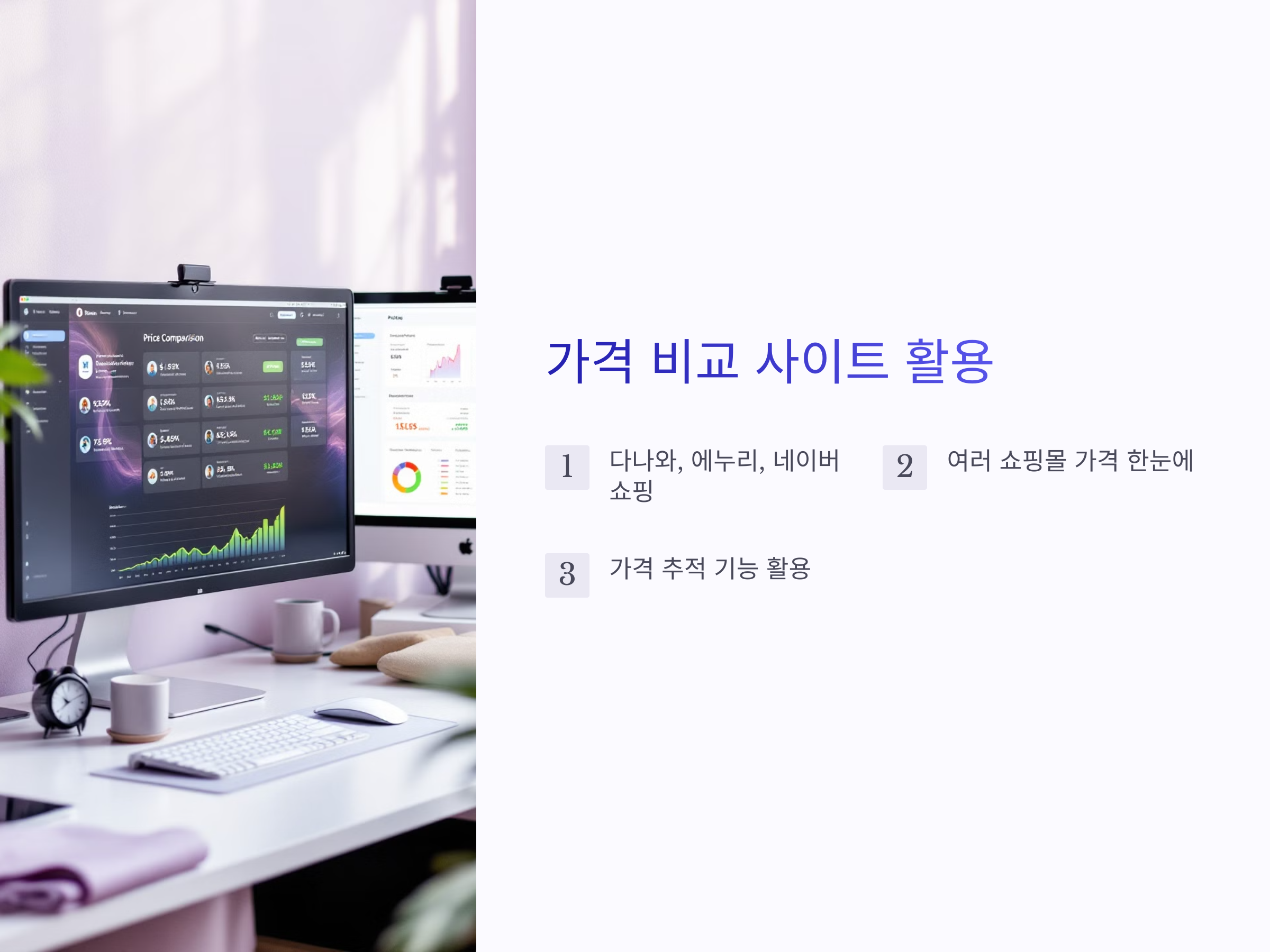 - 가격 비교 사이트 사용법: 대표적으로 다나와, 에누리, 네이버 쇼핑 등이 있습니다. 이 사이트들은 여러 쇼핑몰의 가격을 한눈에 보여주어, 가장 저렴한 곳을 쉽게 찾을 수 있도록 도와줍니다.