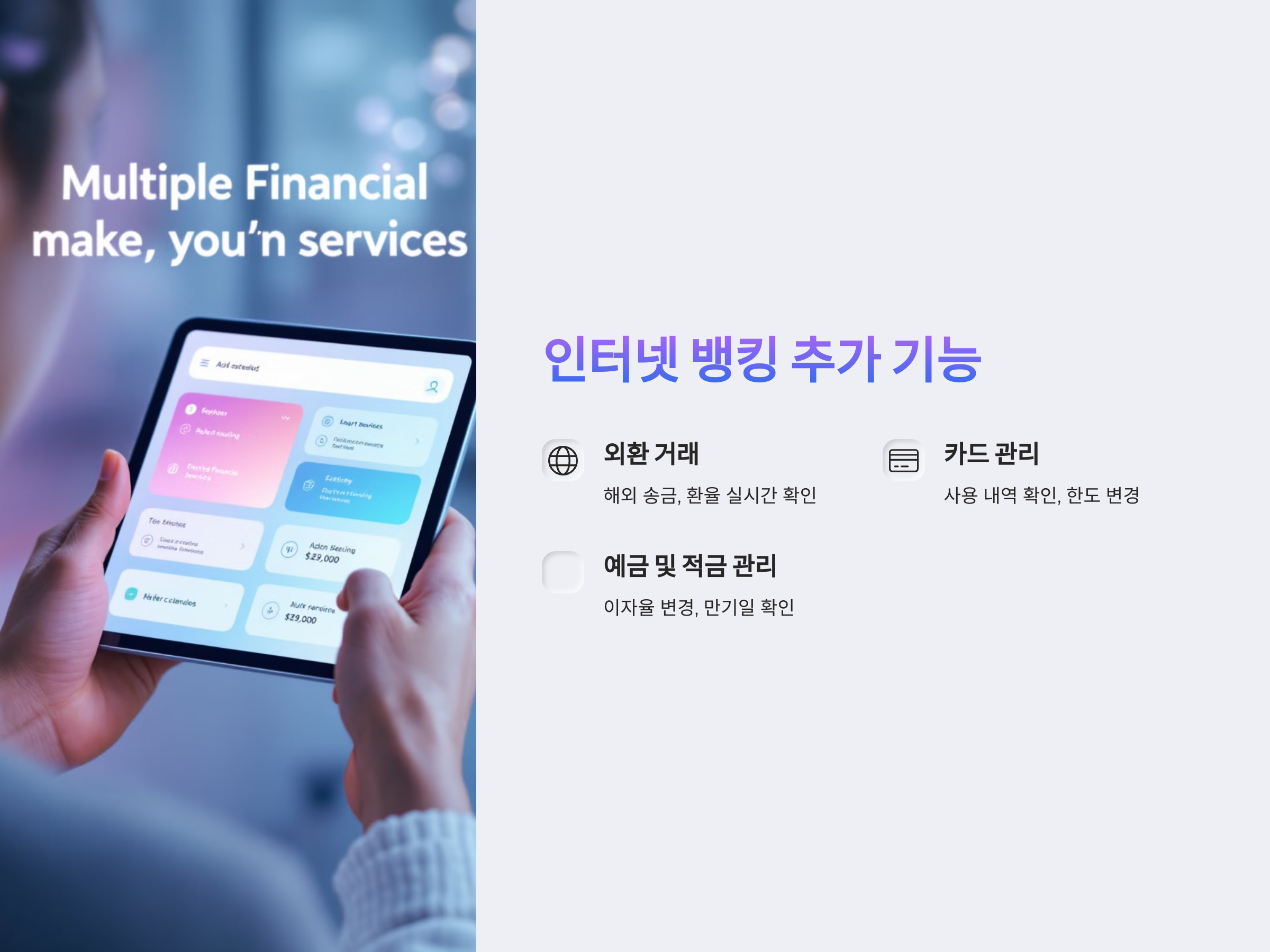 인터넷 뱅킹을 통해 할 수 있는 추가 기능