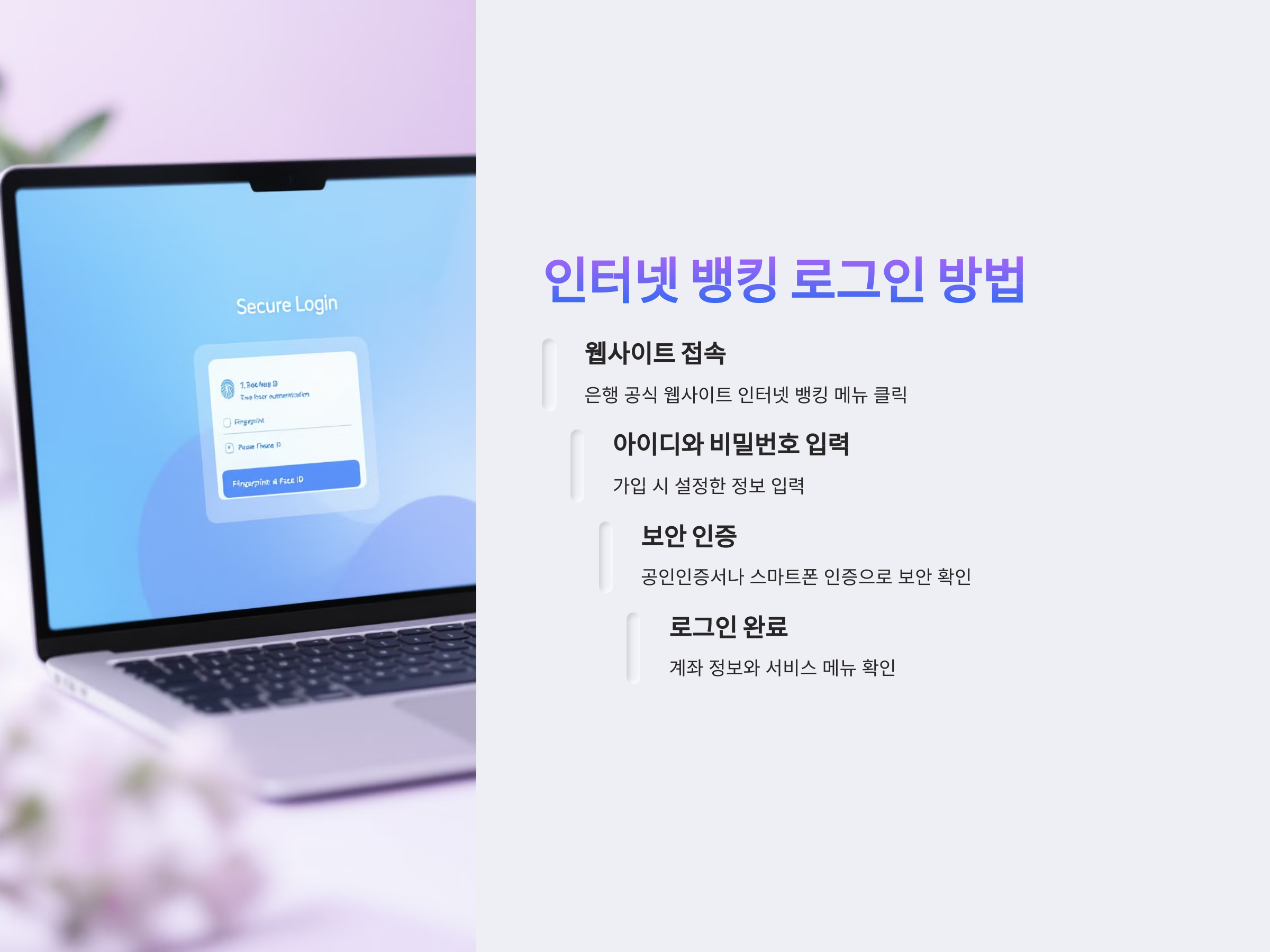 인터넷 뱅킹에 가입한 후에는 로그인을 통해 서비스를 이용할 수 있습니다. 로그인 방법은 대부분 은행마다 비슷하지만, 주요 절차는 다음과 같습니다.