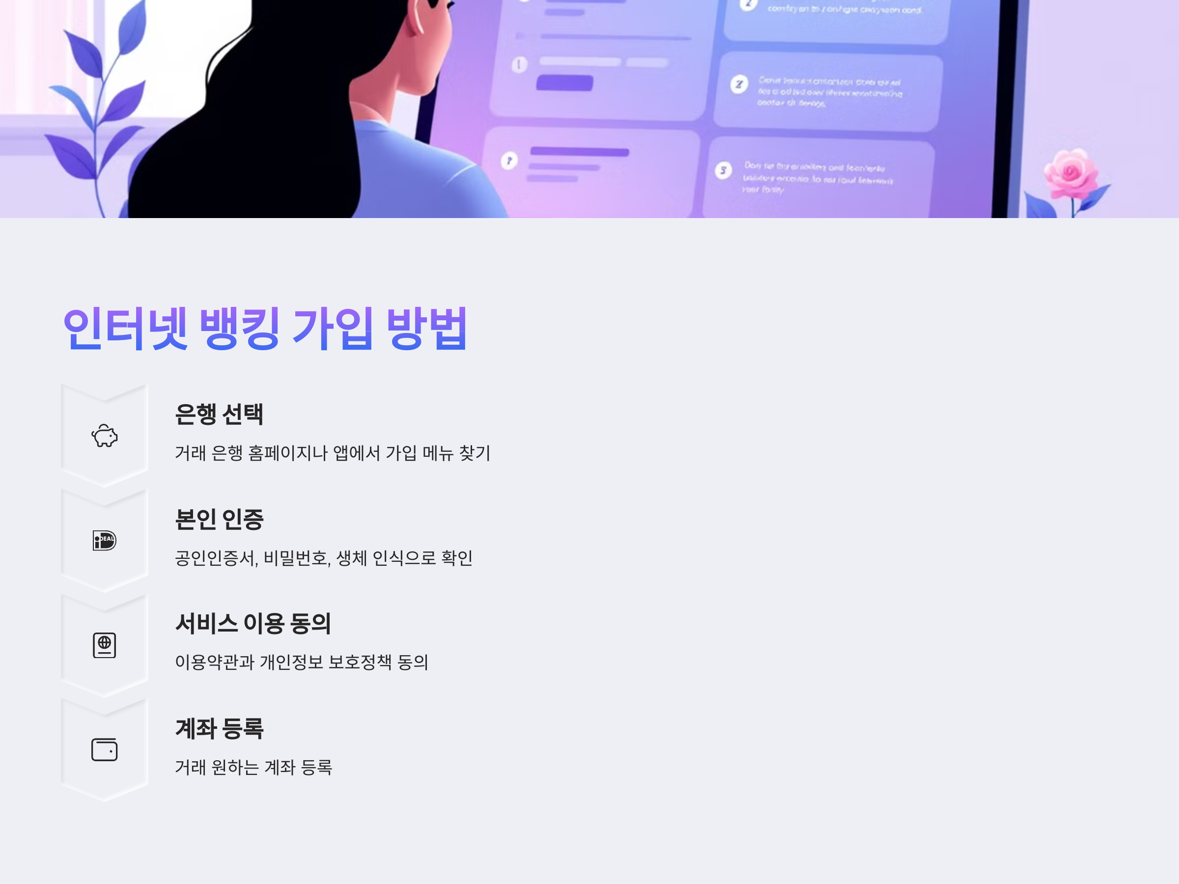 - 이용 가능 시작: 모든 절차가 완료되면, 인터넷 뱅킹 서비스를 사용할 준비가 됩니다. 이제 은행 웹사이트나 앱을 통해 다양한 금융 거래를 진행할 수 있습니다.