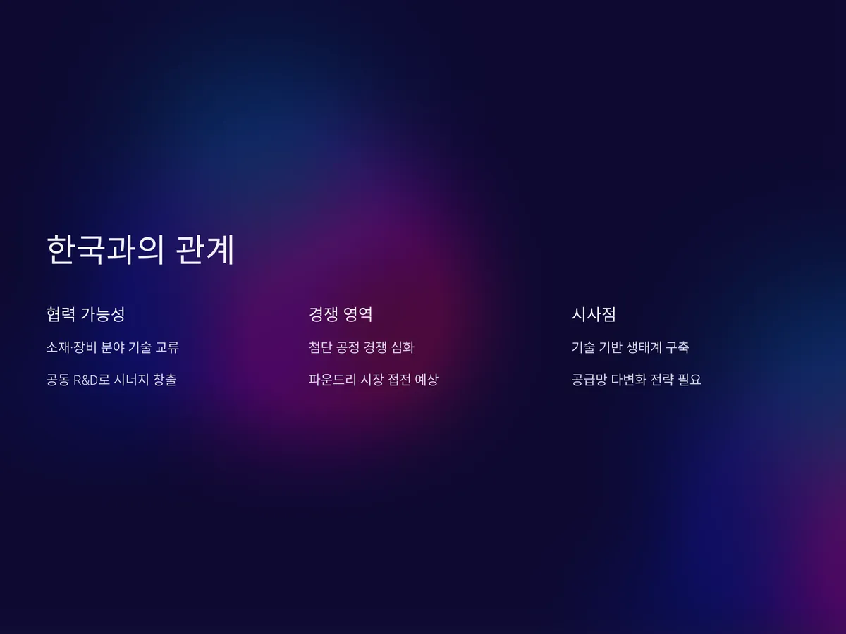 일본의 반도체 산업 부활은 우리나라 입장에서도 중요한 시사점을 준다. 단순한 경쟁이 아닌, 전략적 협력의 가능성도 함께 열려 있기 때문이다. 특히 소재·장비 분야에서 일본과의 기술 교류 및 공동 R&D는 상호 보완적인 시너지를 창출할 수 있다. 반면, 첨단 공정 및 파운드리 경쟁에서는 더욱 치열한 접전이 예상된다.