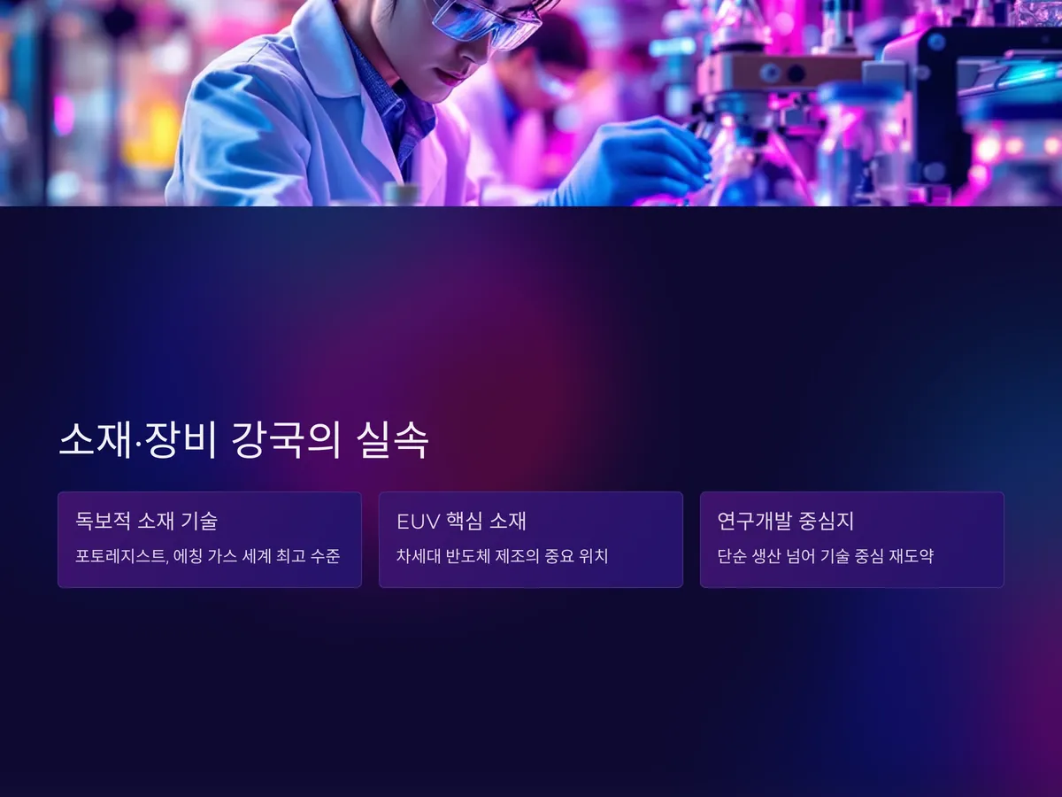 일본이 반도체 산업에서 다시금 힘을 얻는 데에는 그동안 꾸준히 유지해온 소재·장비 기술력이 결정적 역할을 하고 있다. 세계 최고 수준의 포토레지스트, 에칭 가스, CMP 장비 등에서 일본의 기술은 독보적이다. 이는 미국과 유럽, 대만, 심지어 한국에서도 대체하기 어려운 경쟁력으로 작용하고 있다.
