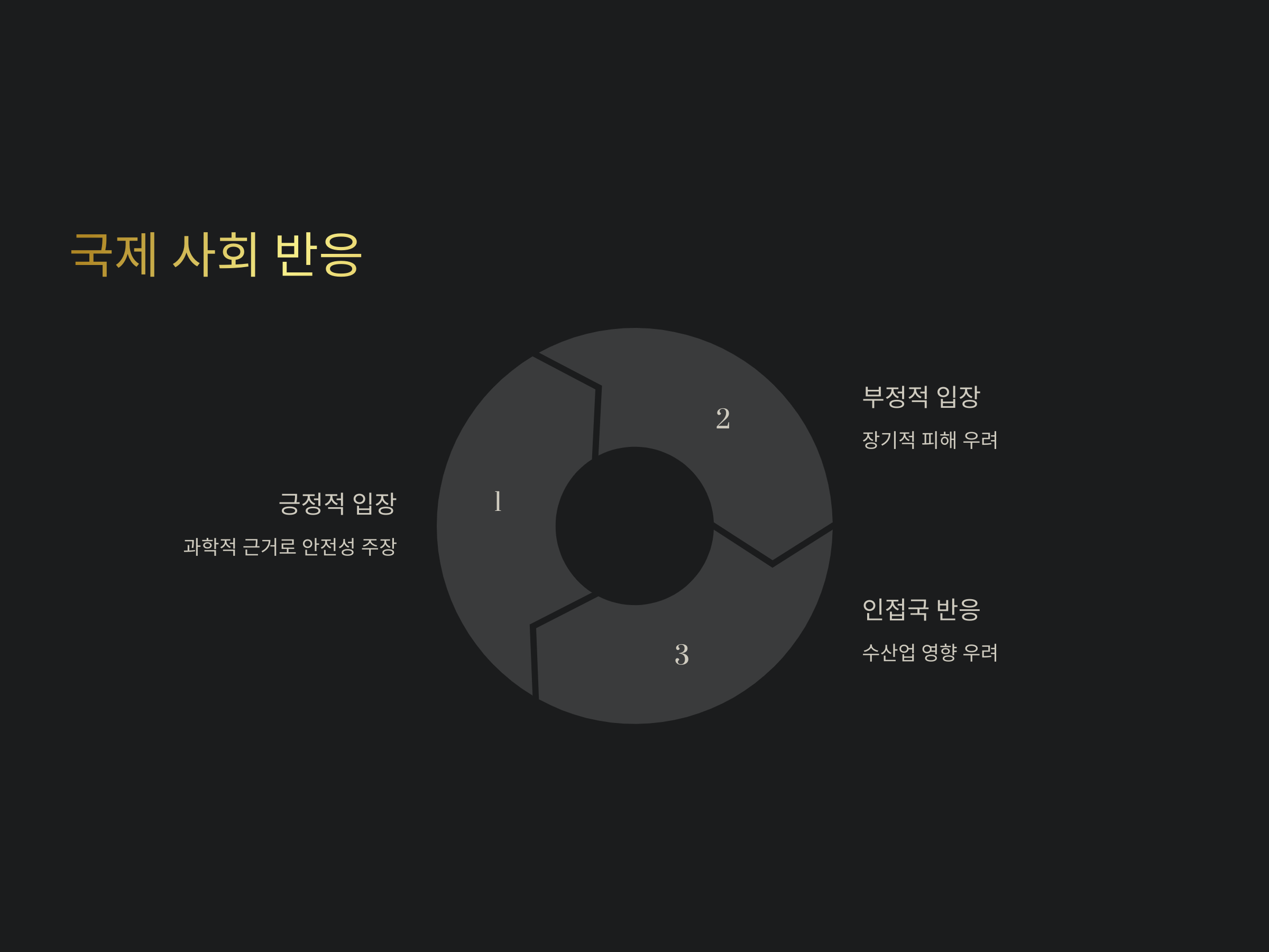 후쿠시마 오염수 방류 결정에 대해 국제 사회는 크게 두 가지 입장으로 나누어집니다. 긍정적인 입장에서는 오염수 방류가 과학적 근거에 따라 안전하게 이루어지며, 해양 생태계에 큰 영향을 미치지 않는다고 주장합니다. 삼중수소 농도가 기준 이하로 유지된다면 해양 생물이나 인류 건강에 미치는 영향은 미미할 것이라는 분석이 있습니다【7†source】.