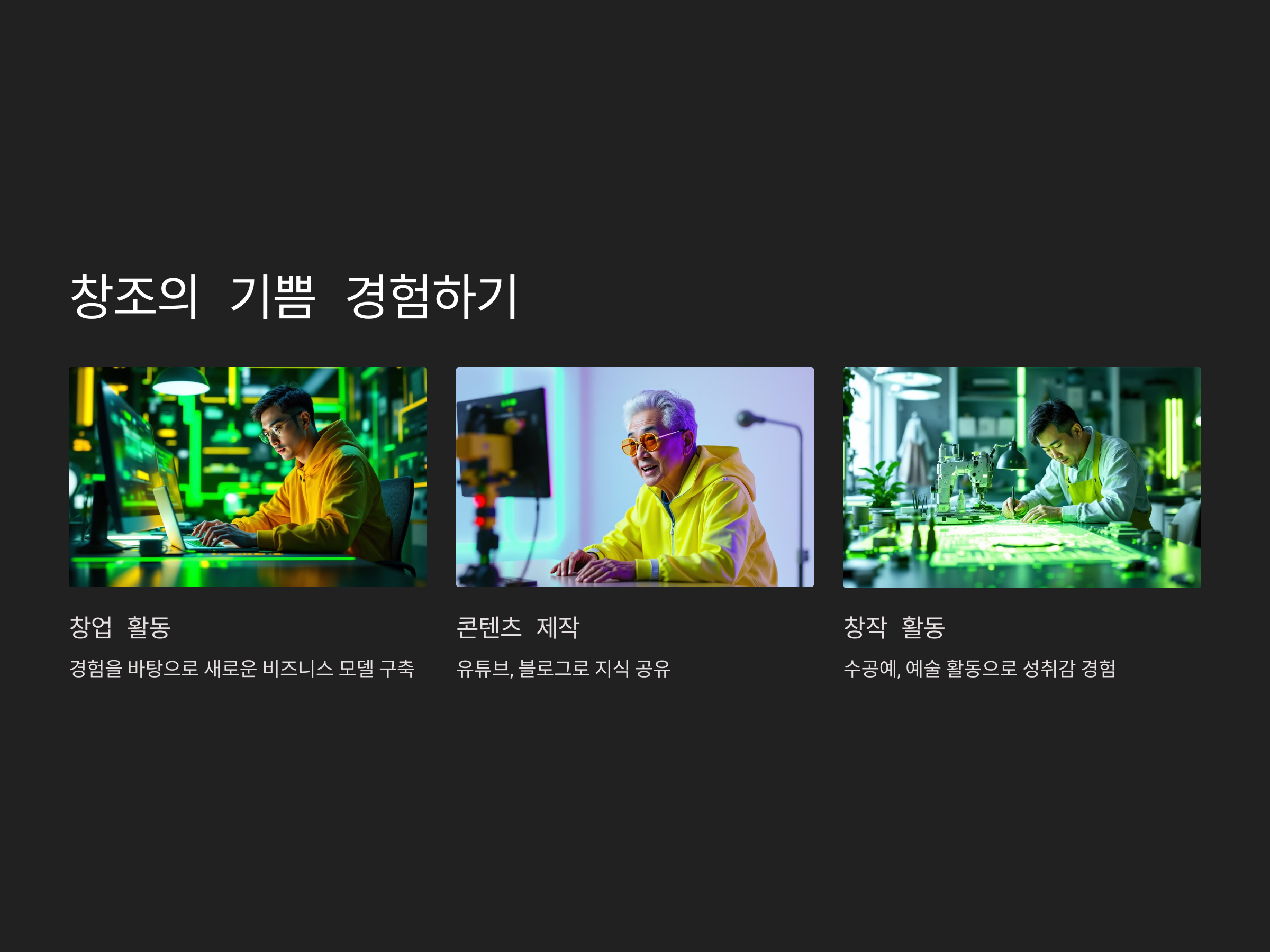 퇴직 후 창업, 창작, 수공예, 유튜브 제작, 블로그 운영 등 다양한 방식으로 ‘무언가를 만드는 즐거움’을 경험하는 사람들이 많습니다. 이는 단순한 취미활동을 넘어 성취감과 정체성 재정립에 큰 역할을 합니다. 이들은 자신이 가진 지식이나 경험을 콘텐츠로 재가공하고, 그것을 통해 새로운 수익 모델을 창출하기도 합니다.