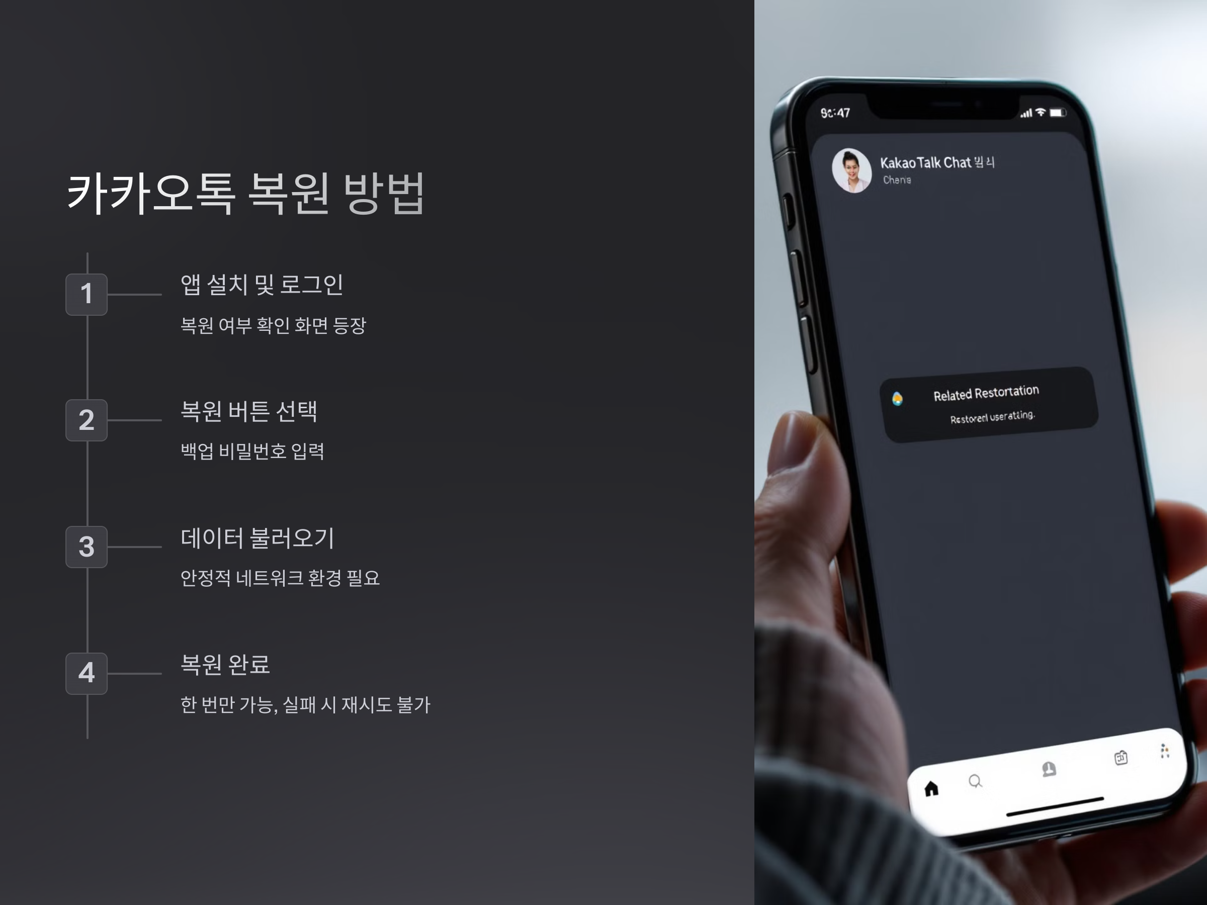 - 자동으로 백업된 데이터를 불러오며, 복원이 완료되면 기존의 대화 기록이 그대로 복원됩니다.