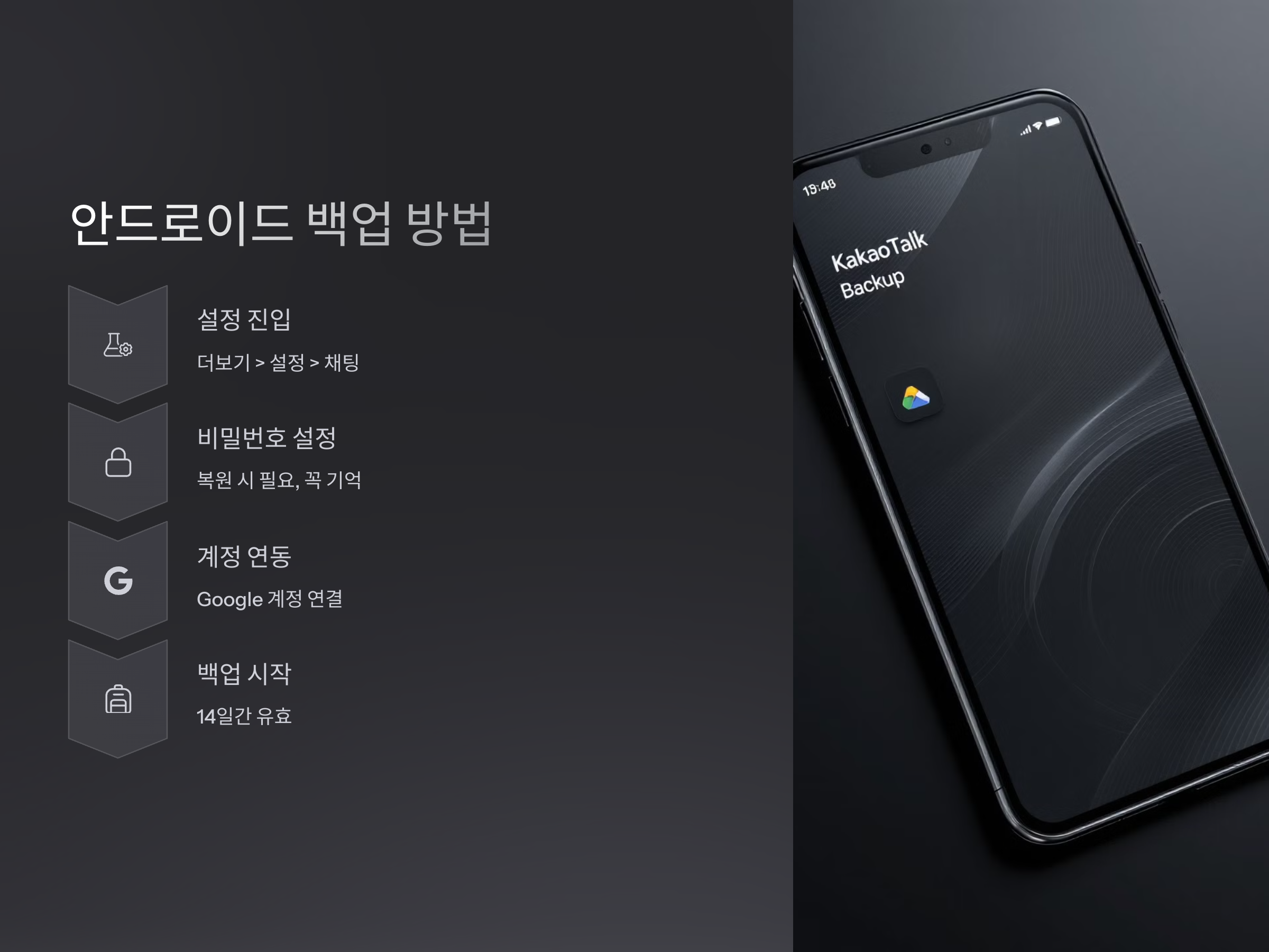백업 완료 시 카카오 계정과 연동된 메일로 백업 완료 안내가 발송되며, 백업된 데이터는 14일간 유효합니다. 이 기간 내에 복원하지 않으면 자동으로 삭제되므로 주의가 필요합니다.