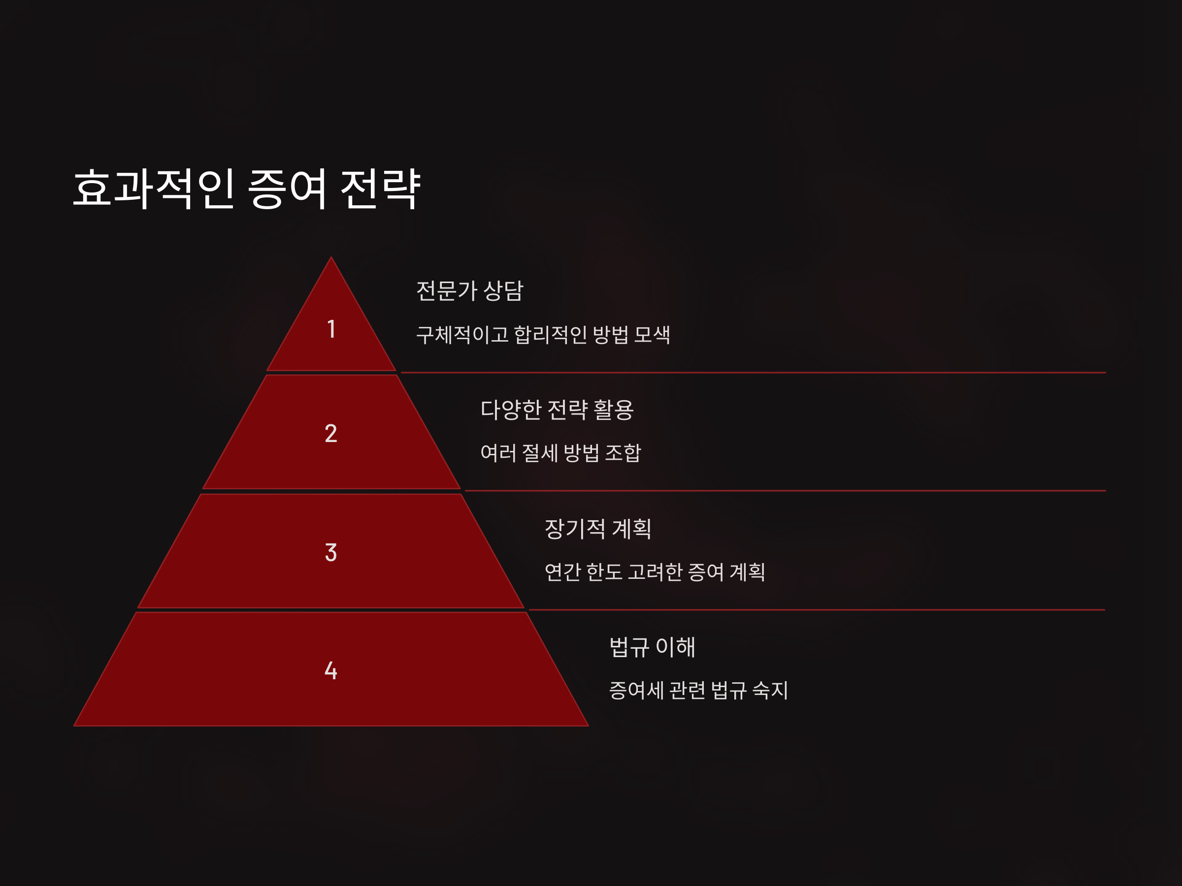 자녀에게 자산을 증여하는 것은 부모로서 자녀에게 큰 선물이 될 수 있지만, 증여세라는 세금 부담을 고려하지 않으면 큰 손실을 입을 수 있습니다. 다양한 절세 전략을 잘 활용하면, 자녀에게 더 많은 자산을 전달할 수 있습니다. 항상 계획적으로 증여를 진행하고, 전문가와 상담하여 세금 부담을 최소화하세요.