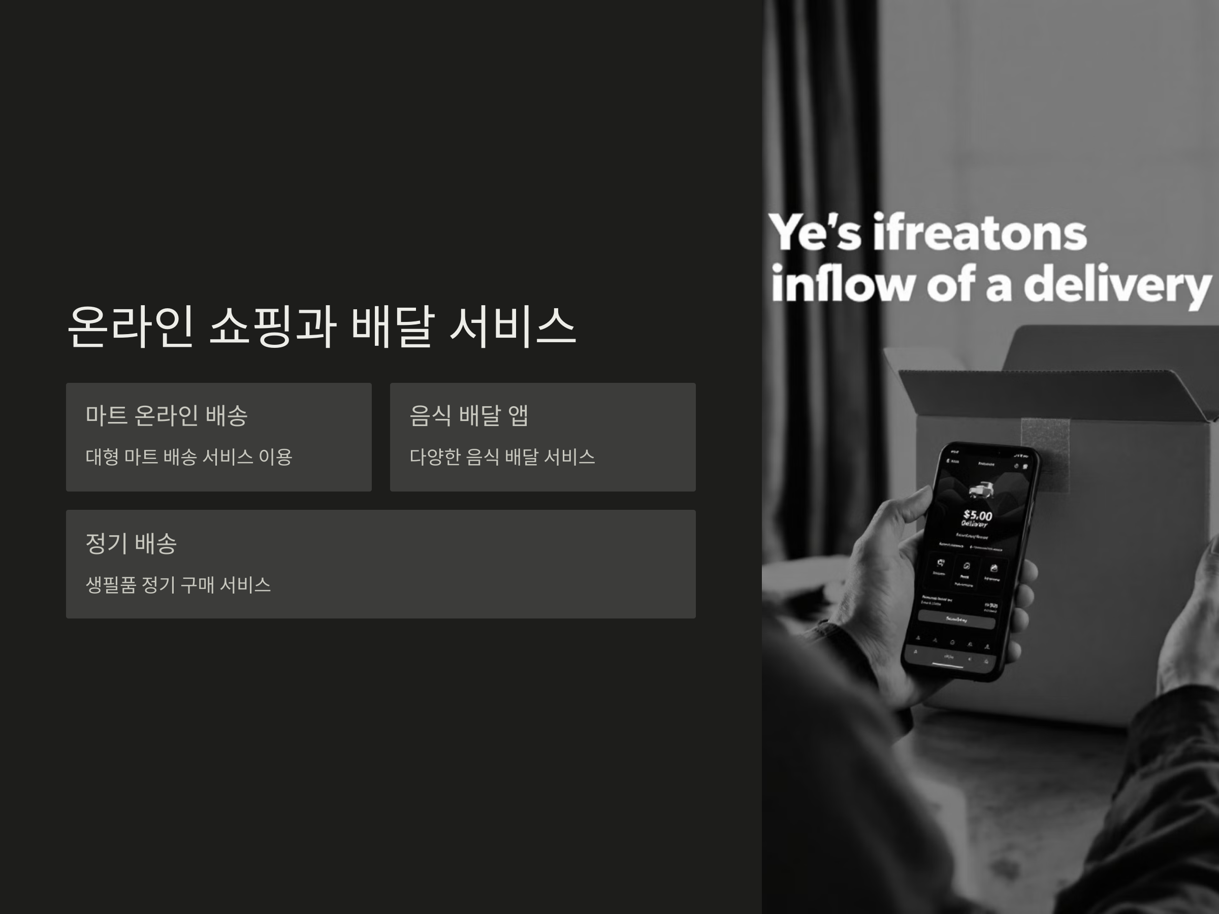 - 배달 서비스와 온라인 쇼핑을 적절히 조합하여 활용