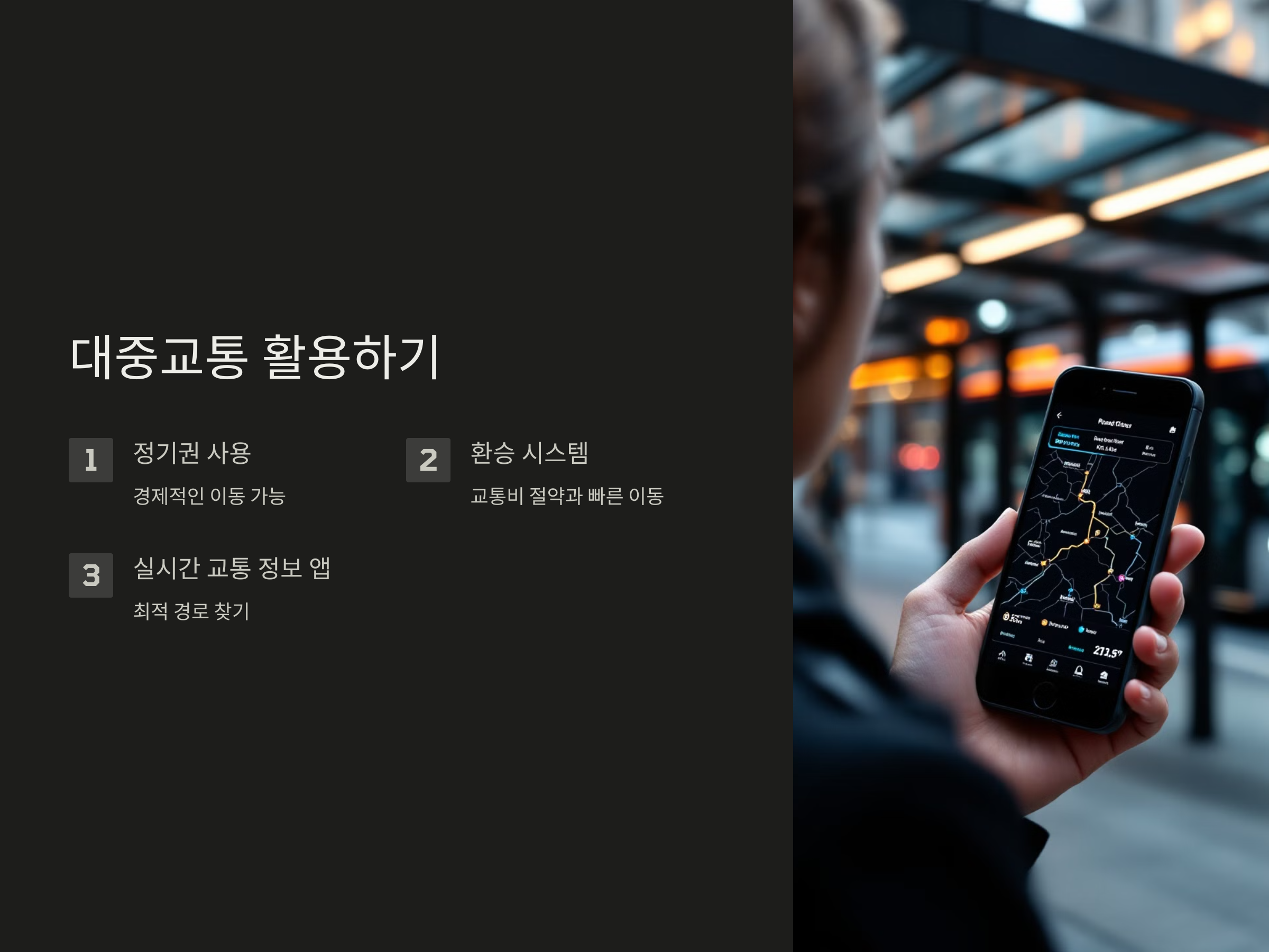 대중교통은 자동차 없이 생활하는 가장 기본적인 방법입니다. 한국은 특히 대중교통 시스템이 잘 발달되어 있어, 버스와 지하철을 적절히 이용하면 자동차 없이도 충분히 이동할 수 있습니다.