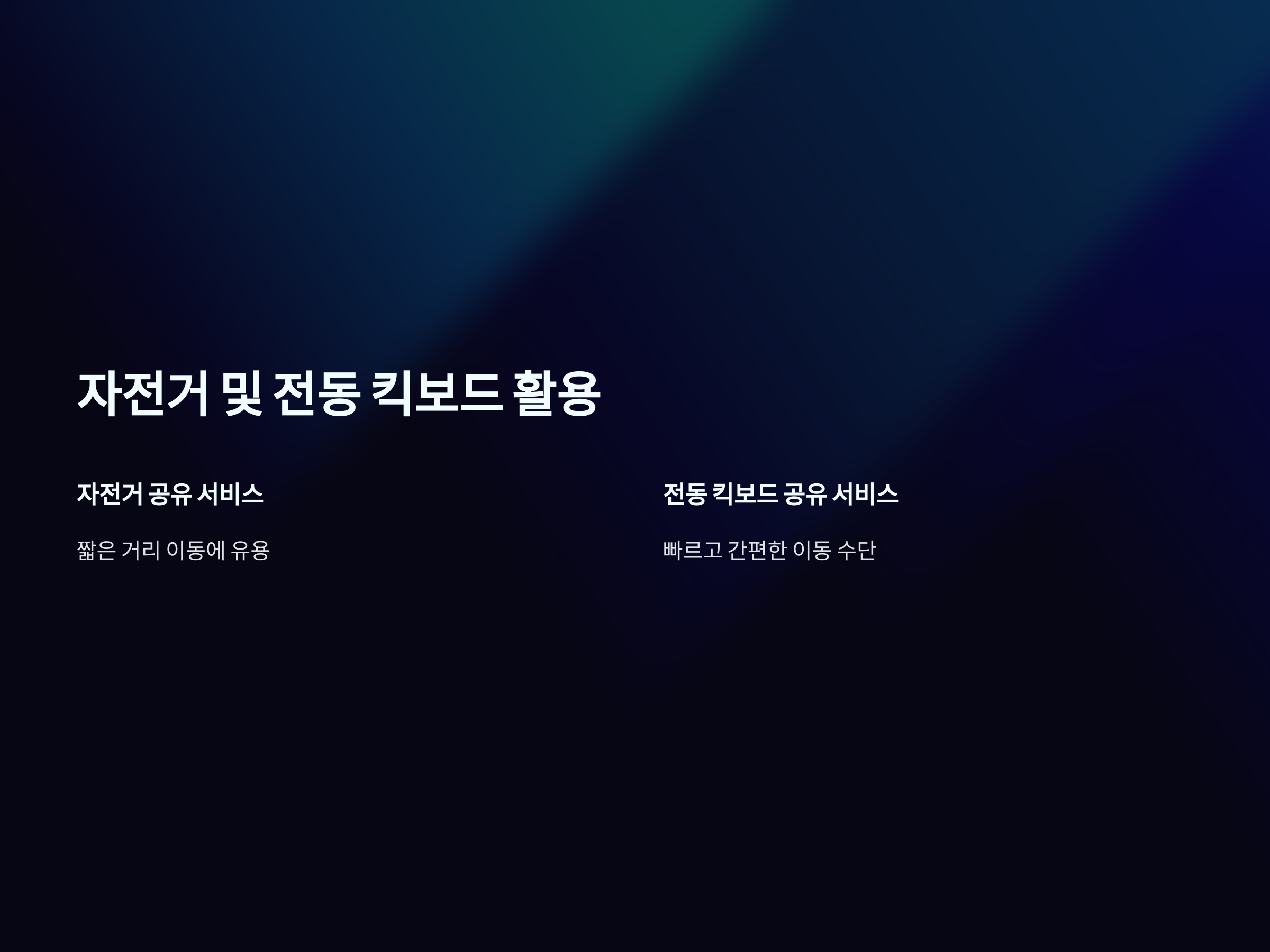 자전거 및 전동 킥보드 활용
