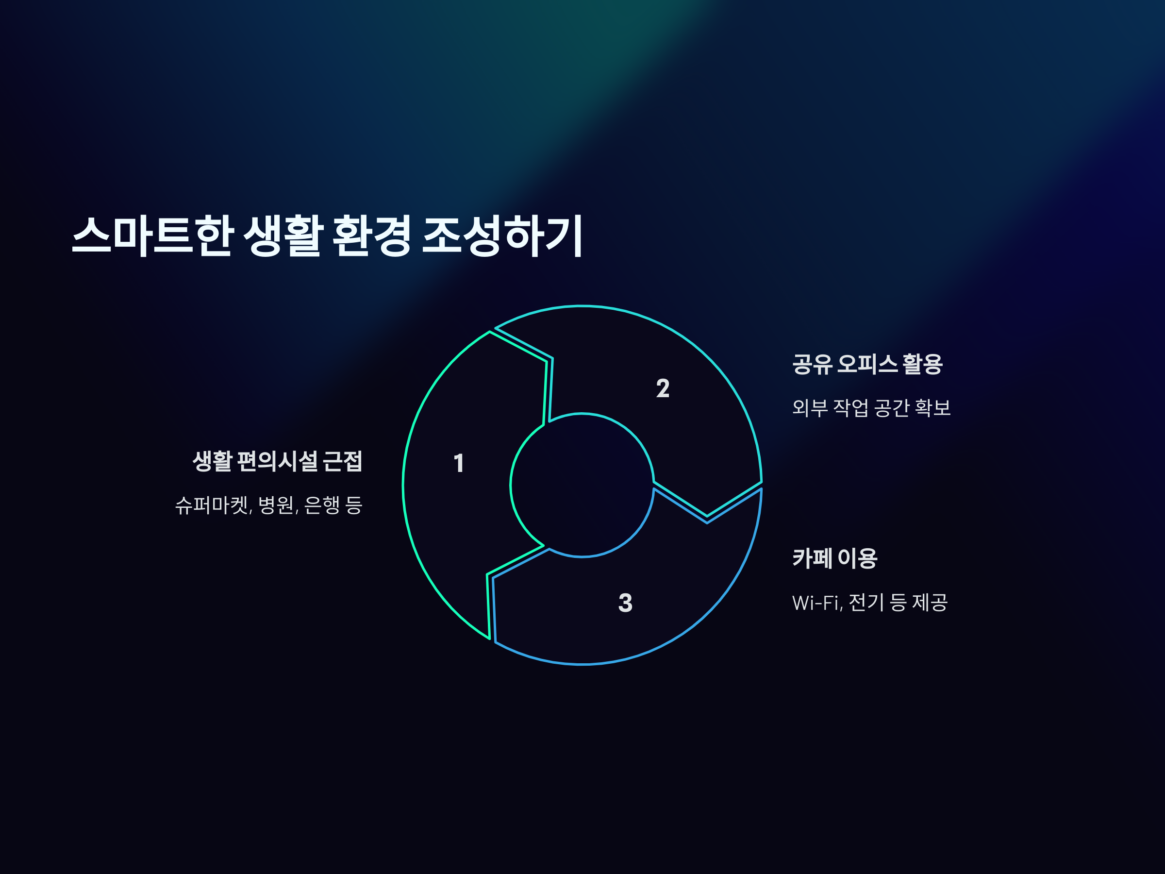 1. 가까운 위치에 생활 편의시설 확보