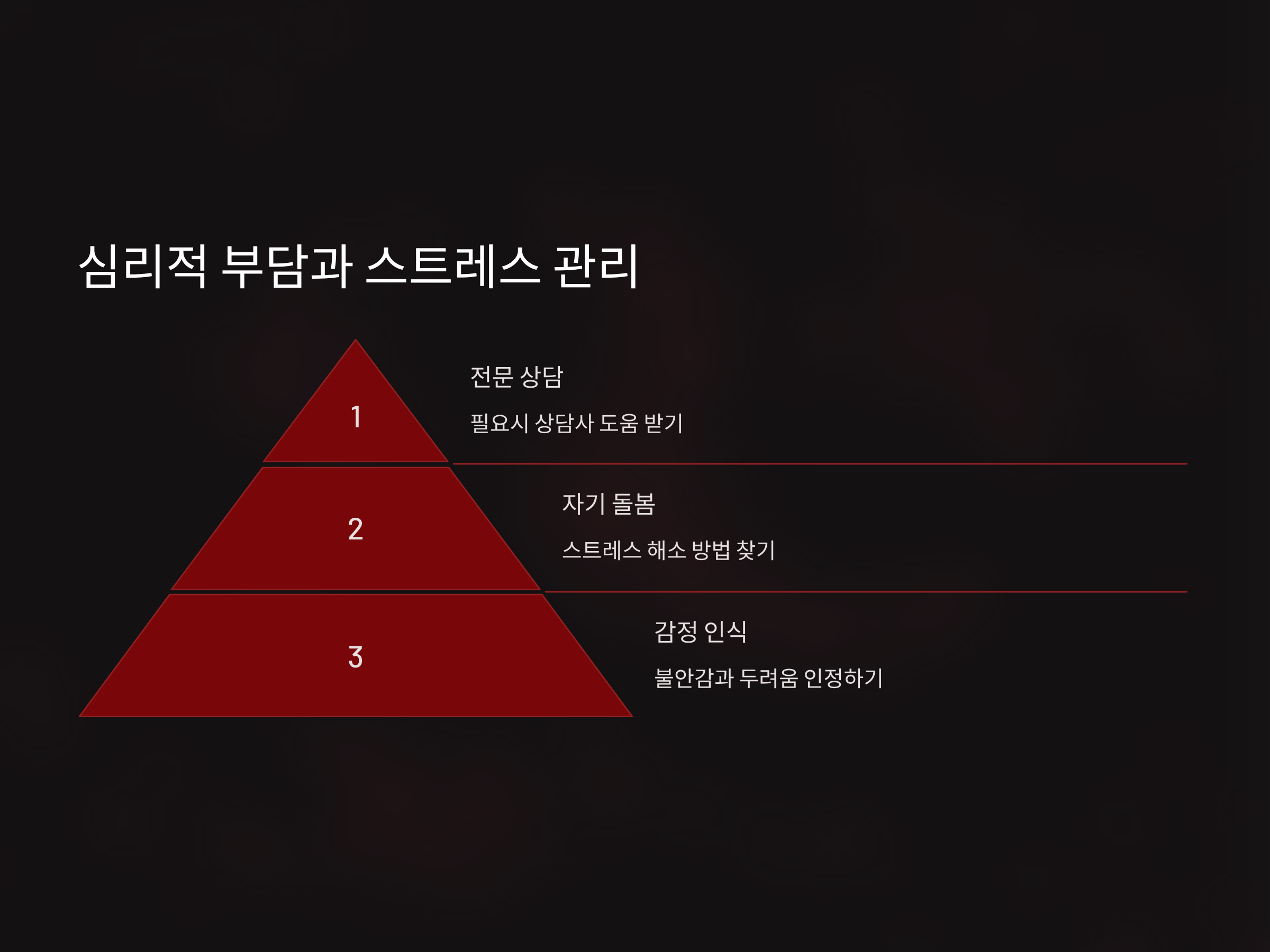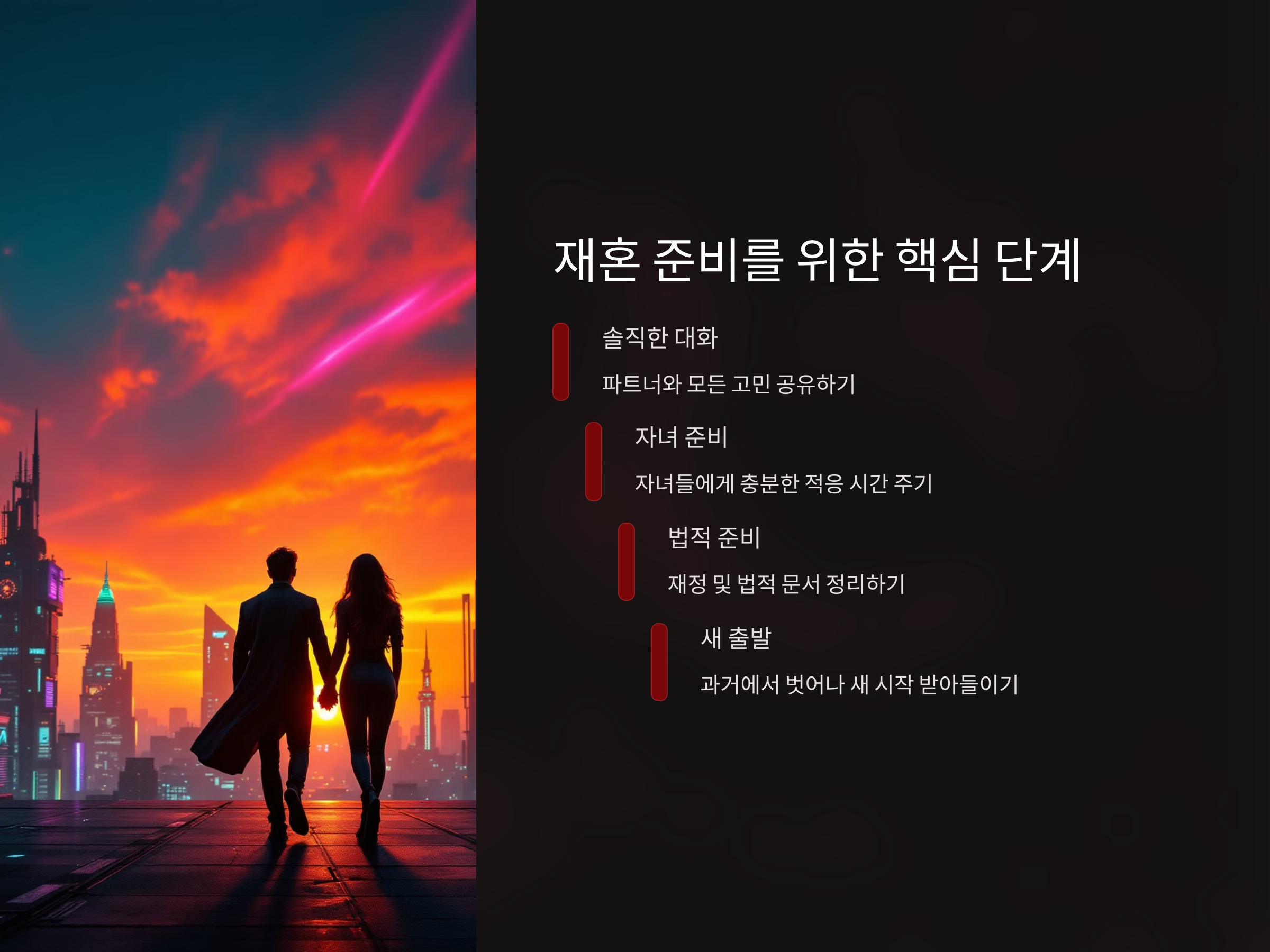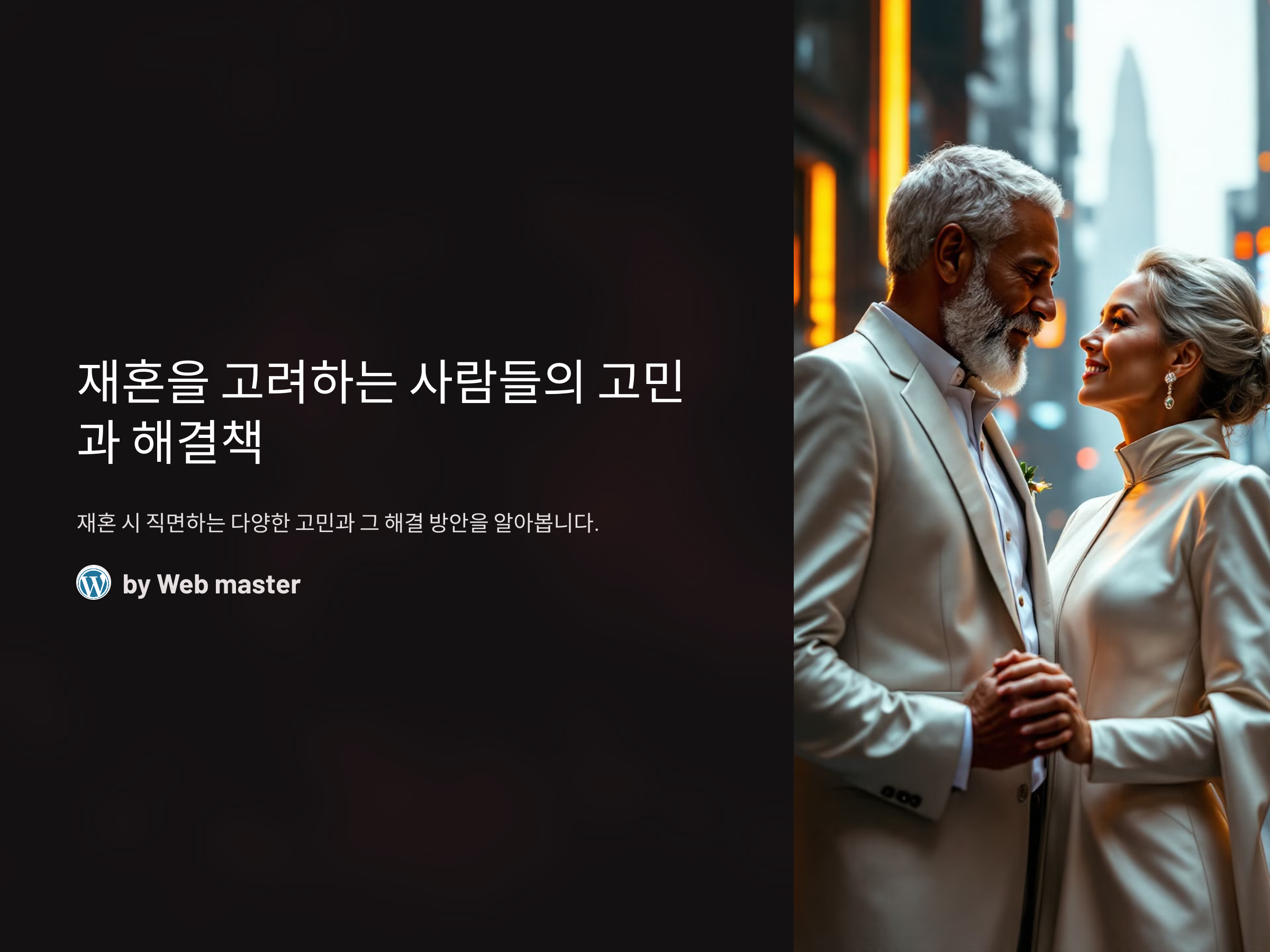 재혼은 새로운 시작을 의미하지만, 동시에 심리적인 부담과 스트레스를 동반할 수 있습니다. 과거의 경험으로 인한 불안감이나 새로운 관계에 대한 두려움 등이 나타날 수 있습니다. 이러한 감정을 관리하기 위해서는 자기 돌봄과 스트레스 해소 방법을 찾는 것이 중요합니다. 필요하다면 전문 상담사의 도움을 받는 것도 고려해볼 수 있습니다.