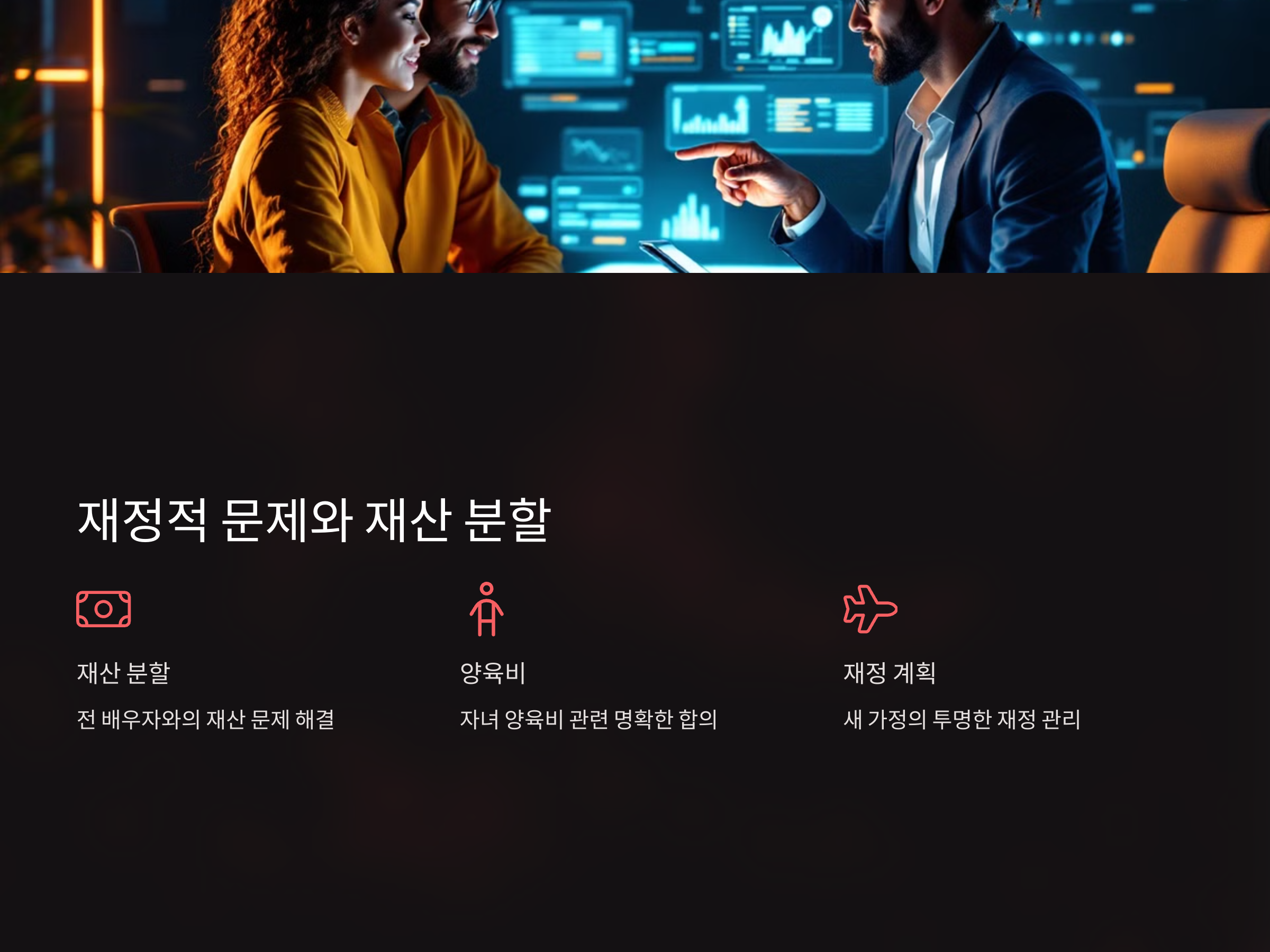 재혼 시 재정적인 문제도 중요한 고려 사항입니다. 전 배우자와의 재산 분할, 자녀 양육비, 새로운 가정의 재정 관리 등 다양한 재정적 이슈가 발생할 수 있습니다. 이러한 문제를 해결하기 위해서는 재정 전문가의 도움을 받거나, 배우자와의 투명한 재정 계획 수립이 필요합니다.