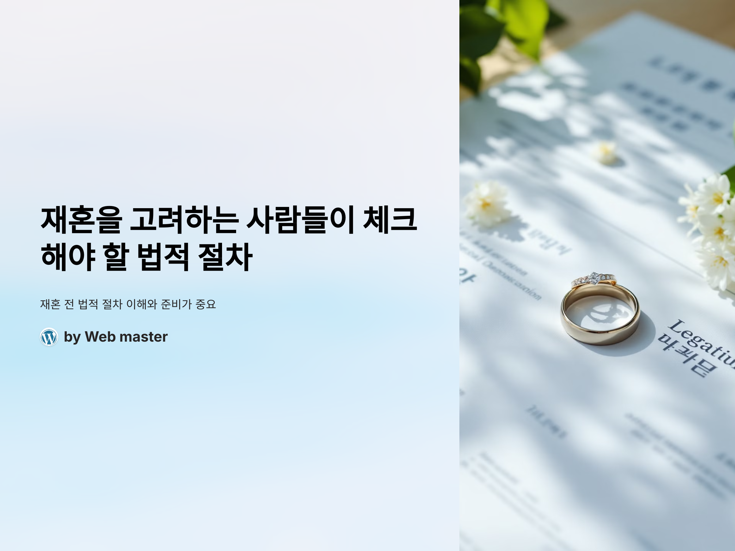 재혼을 고려할 때, 여러 가지 법적 절차를 정확히 이해하고 준비하는 것이 중요합니다. 특히 재혼을 진행하기 전에 첫 번째 결혼의 법적 절차가 완전히 종료된 상태인지 확인하고, 새로운 결혼을 위한 서류 준비 및 법적 요건을 충족하는 것이 필요합니다. 이 글에서는 재혼을 고려하는 사람들이 체크해야 할 법적 절차와 중요한 사항들을 상세히 다룰 것입니다.