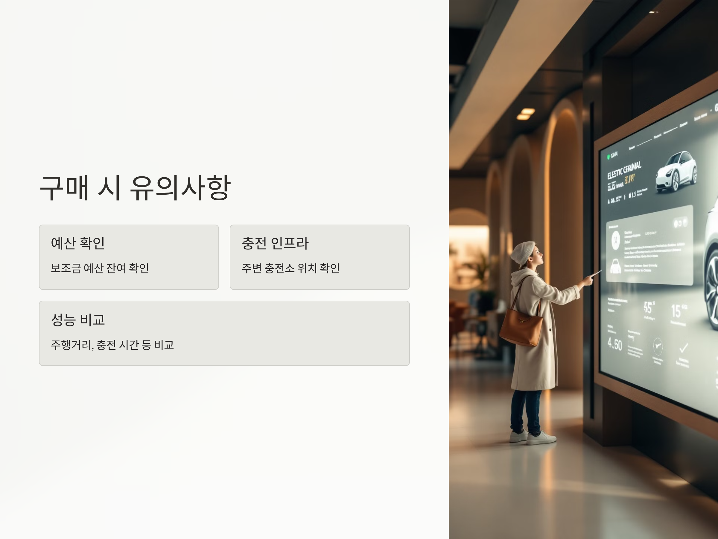 전기차를 구매하실 때 다음 사항을 유의하시기 바랍니다: