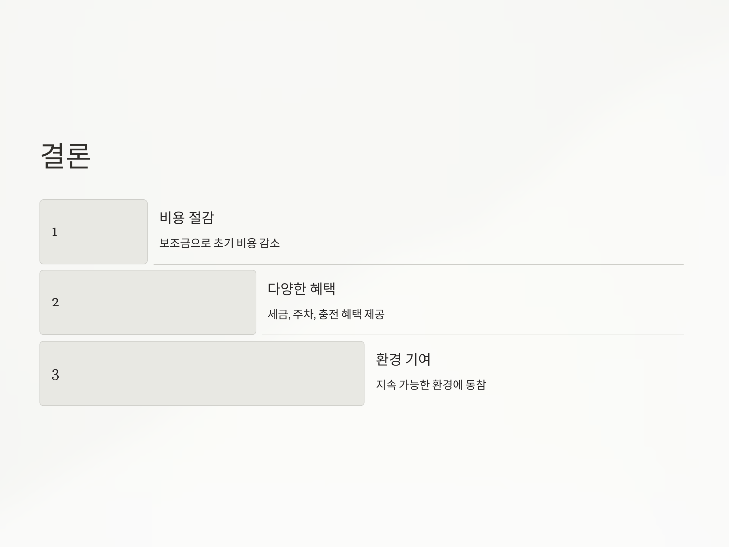 - 고속도로 통행료 할인: 전기차 전용 할인 혜택