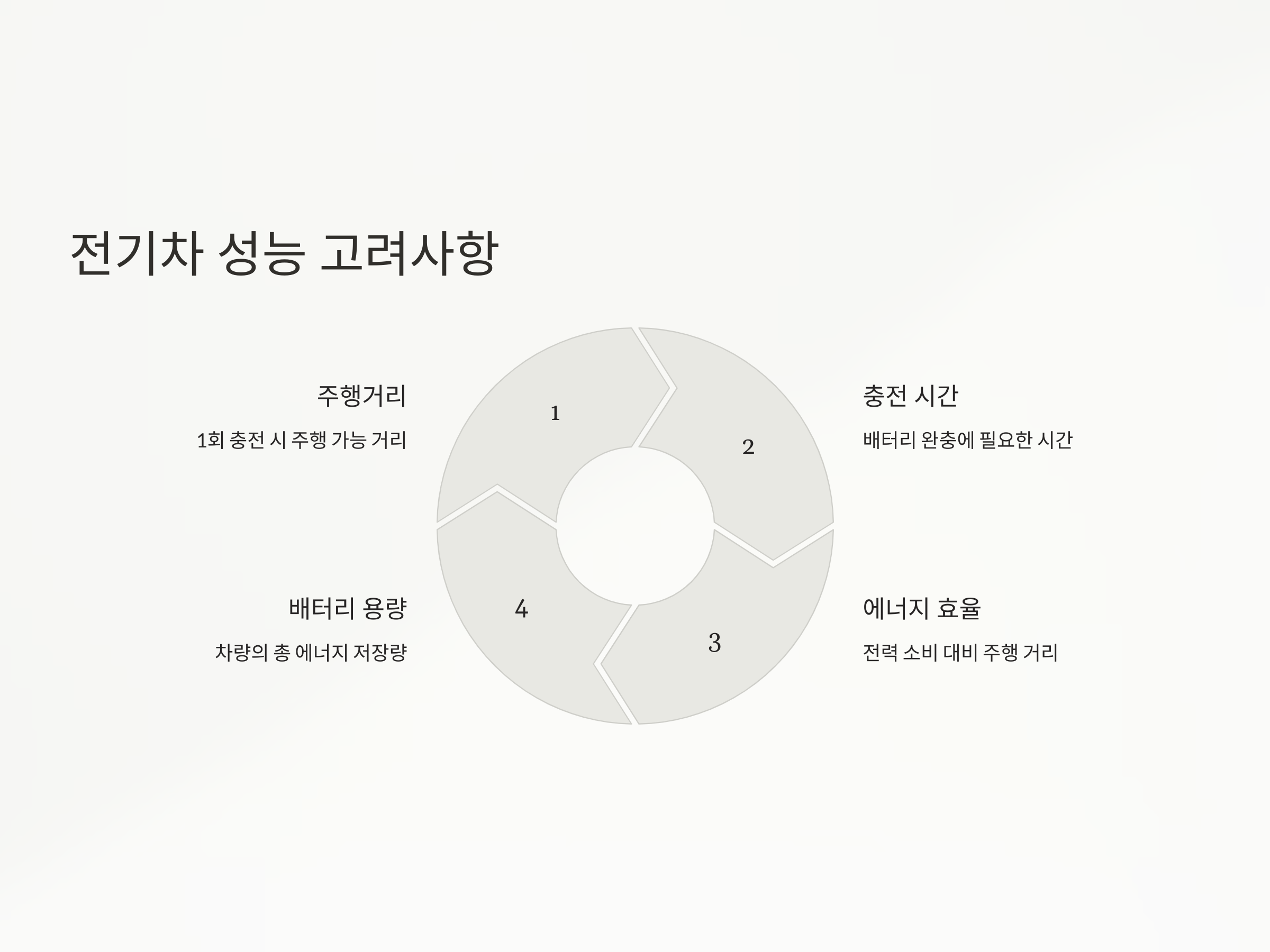 - 차량 성능 비교: 주행거리, 충전 시간, 에너지 효율 등 차량의 성능을 비교하여 자신의 운행 패턴에 맞는 차량을 선택하세요.