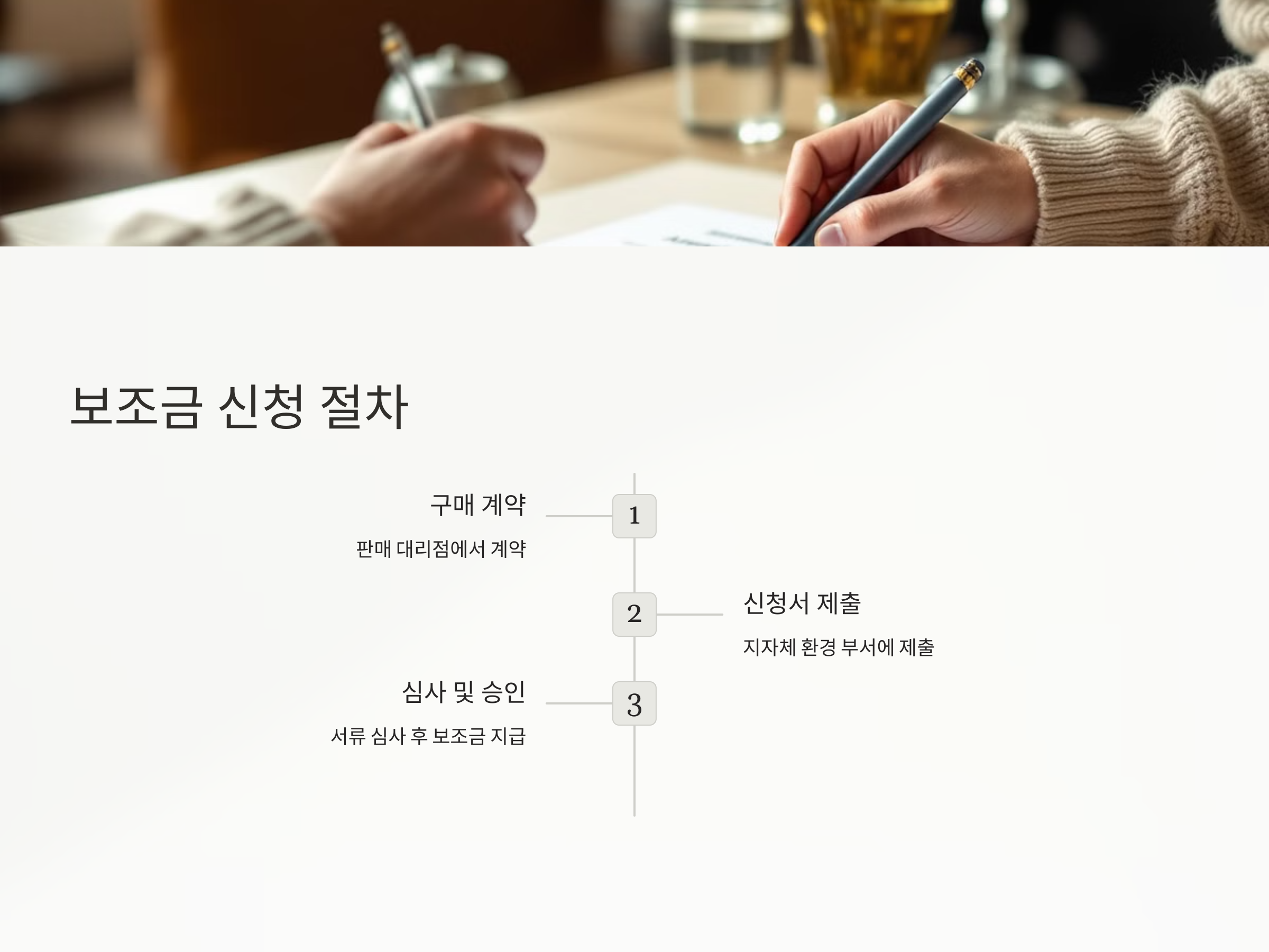- 보조금 신청서 제출: 해당 지자체의 환경 부서나 지정된 기관에 보조금 신청서를 제출합니다.