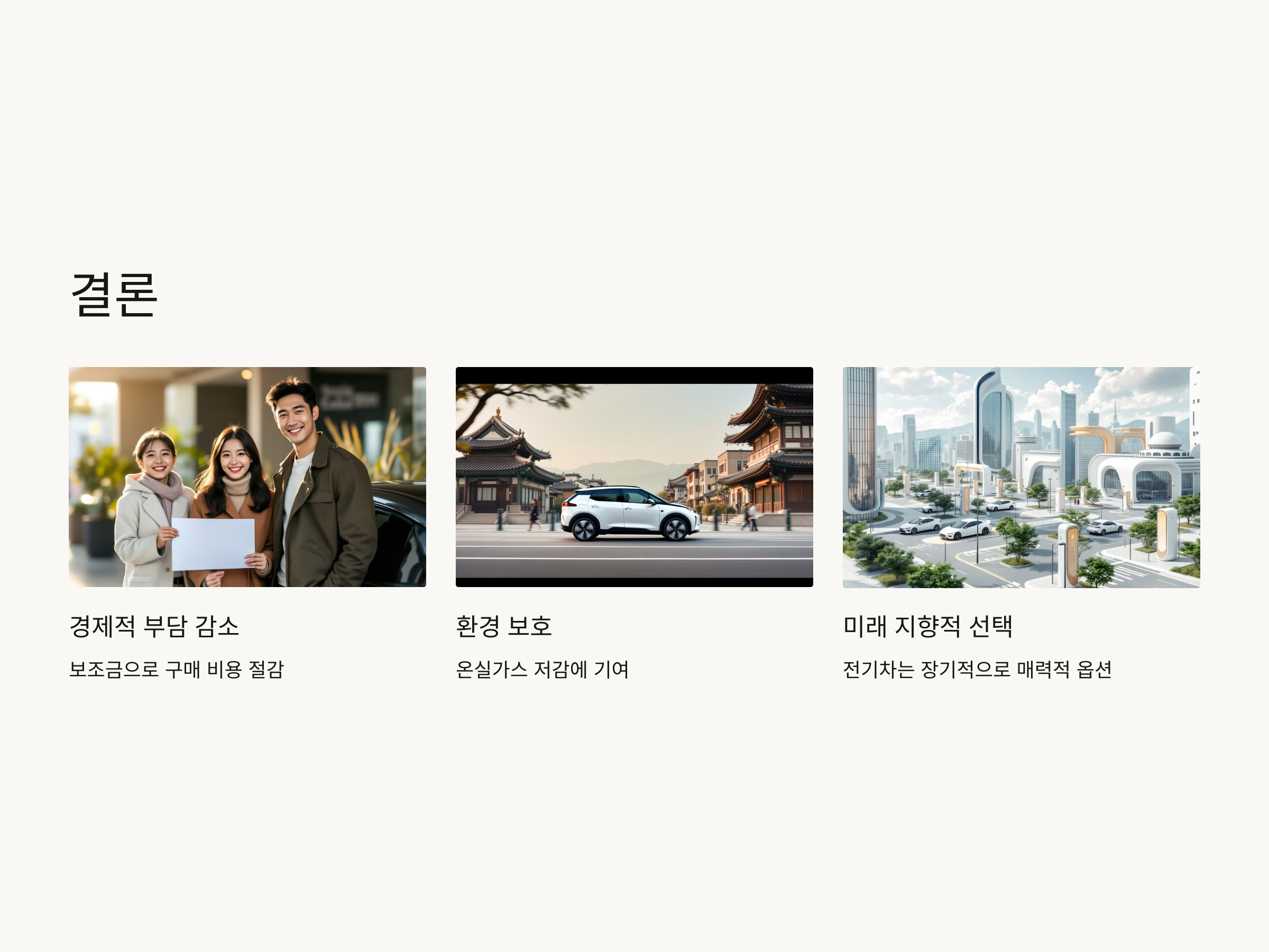 또한, 전기차는 단순히 환경에 좋을 뿐만 아니라, 경제적 혜택을 제공하는 훌륭한 선택입니다. 장기적인 운용비 절감, 세금 혜택 등 다양한 이점들을 고려하면, 전기차는 매우 매력적인 구매 옵션이 될 수 있습니다.