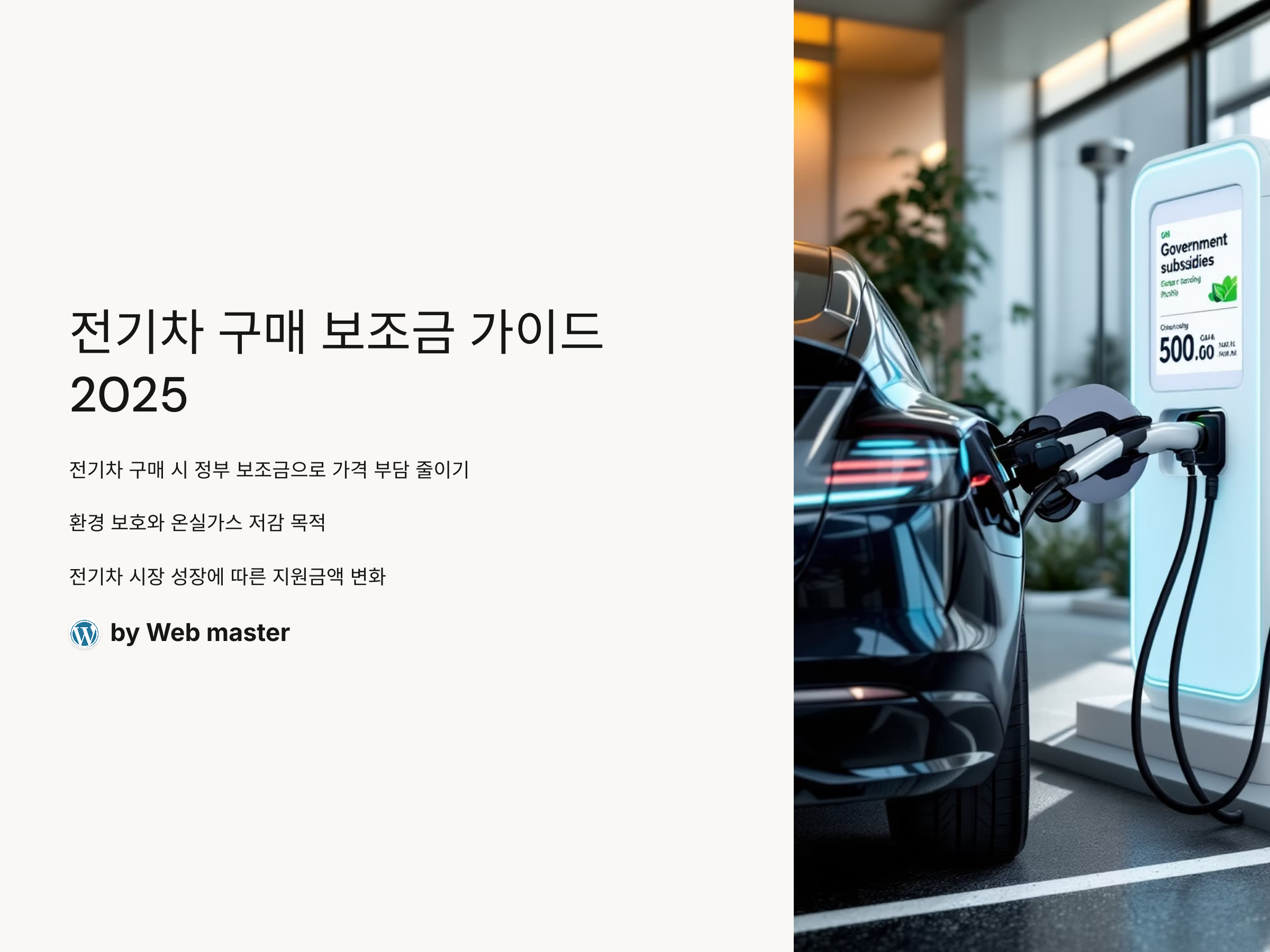 - 전기차 보조금 대상 확인: 선택한 모델이 국가 및 지자체 보조금 지원 대상인지 확인합니다.