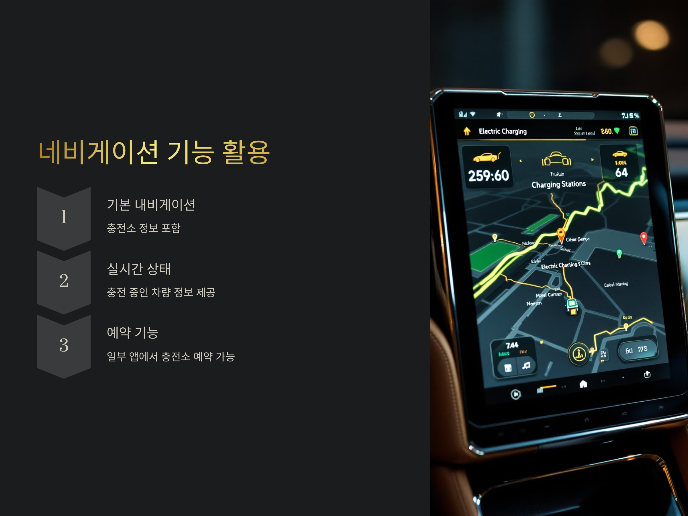 네비게이션 시스템을 활용하는 것도 매우 유용한 방법입니다. 요즘 대부분의 차량은 기본 내비게이션에 전기차 충전소 정보가 포함되어 있어서, 목적지를 설정할 때 충전소를 미리 찾아볼 수 있습니다. 이를 통해 충전소를 미리 예약하거나, 경로에 맞는 충전소를 찾아 차를 이동시킬 수 있습니다.