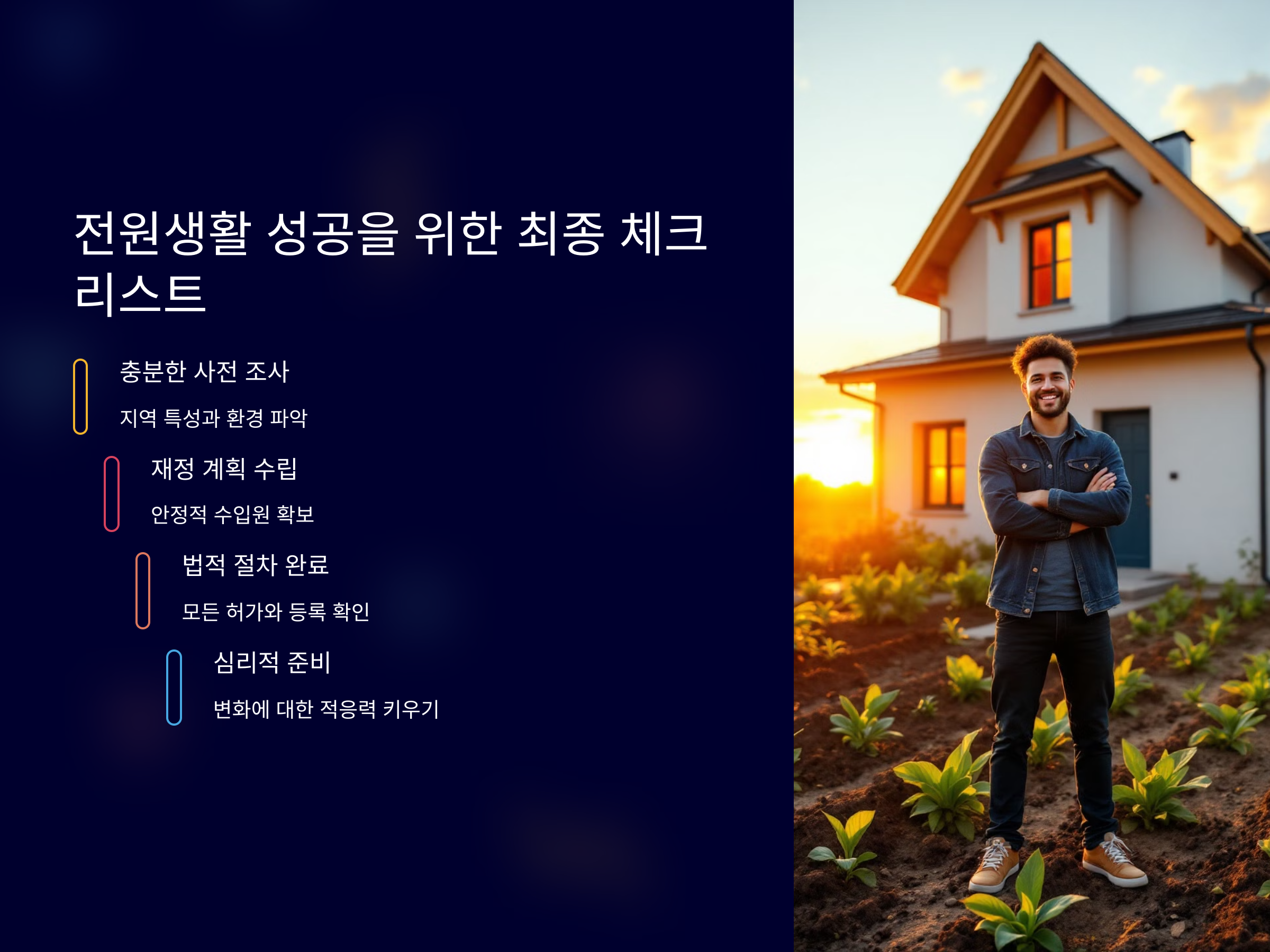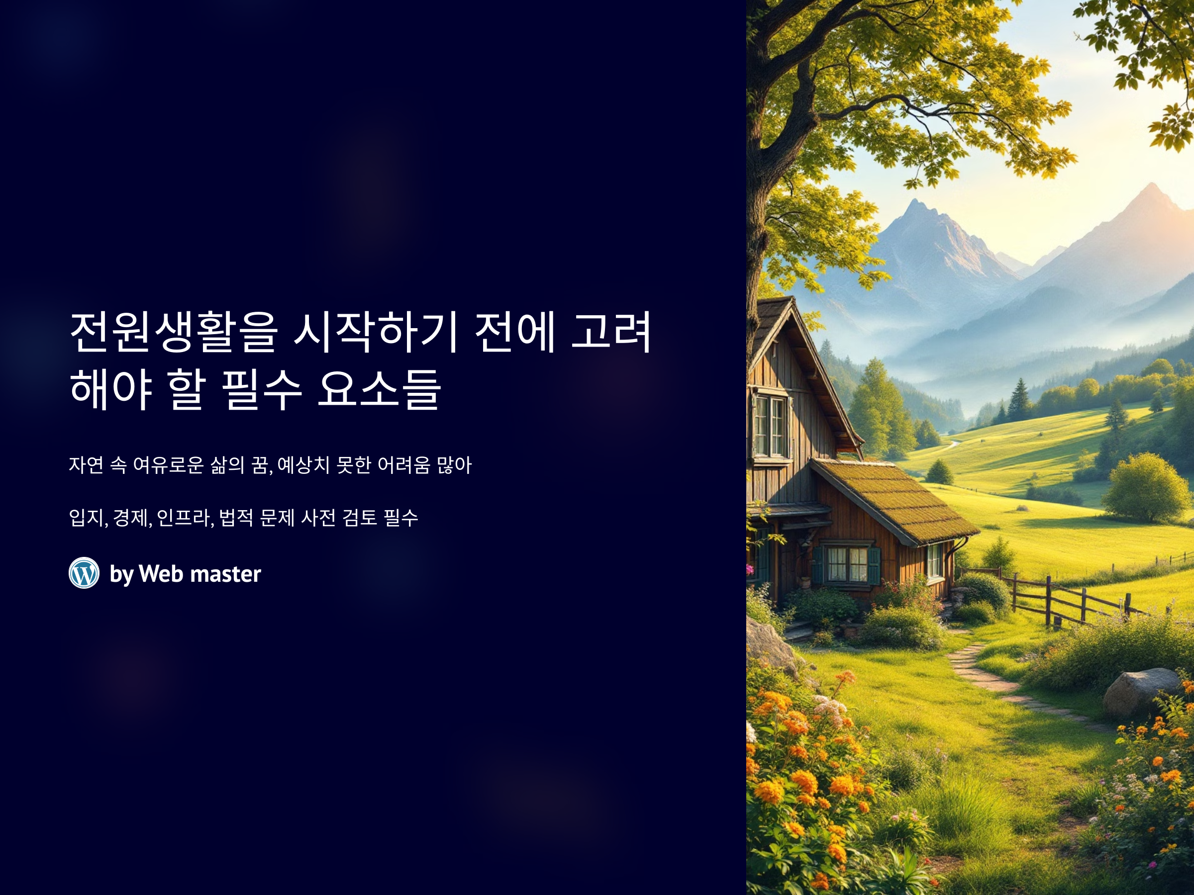 이러한 요소들을 충분히 고려하지 않으면, 전원생활이 예상보다 더 힘들게 느껴질 수 있습니다.
