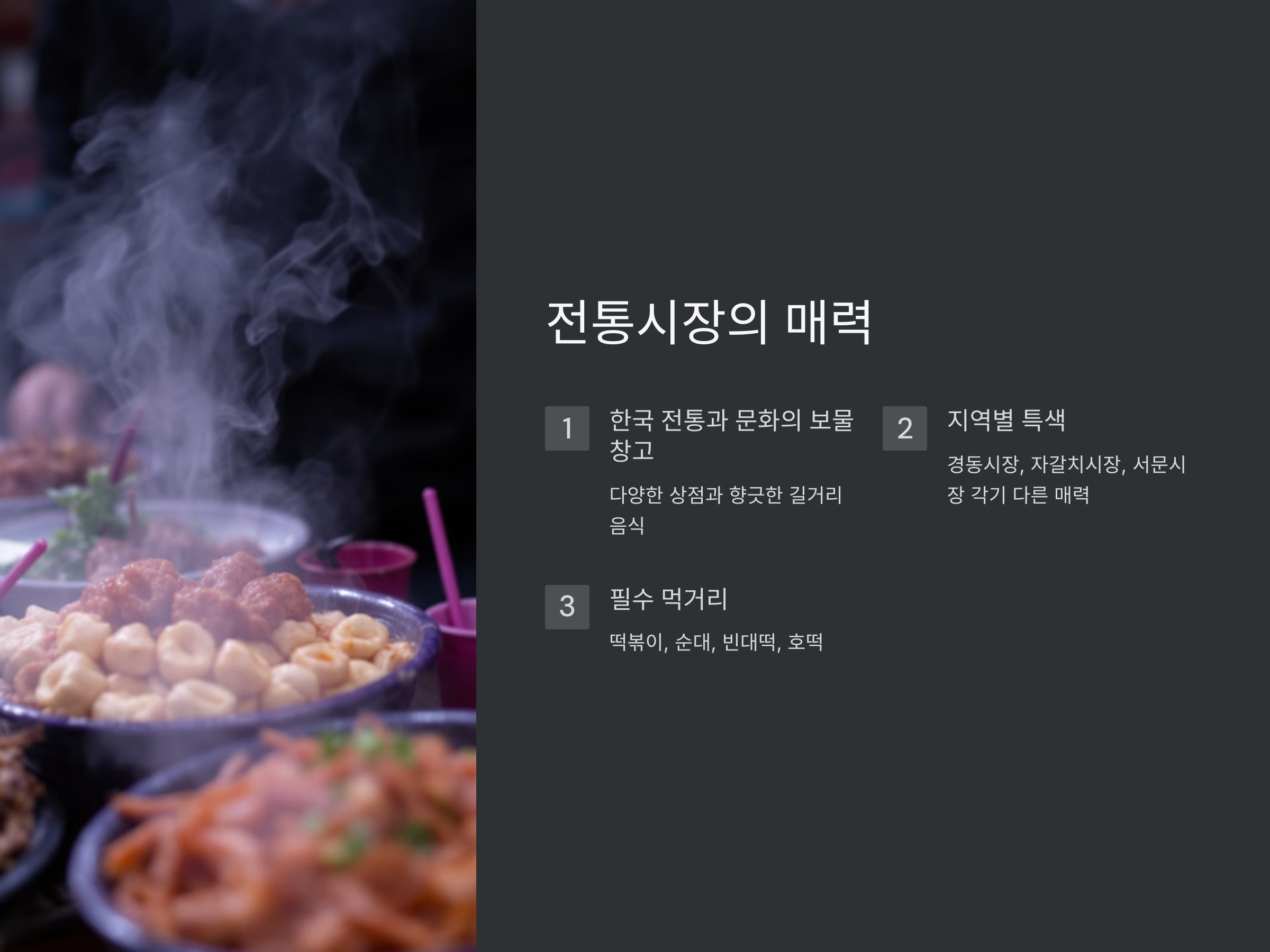 전통시장에서 즐길 수 있는 다양한 먹거리