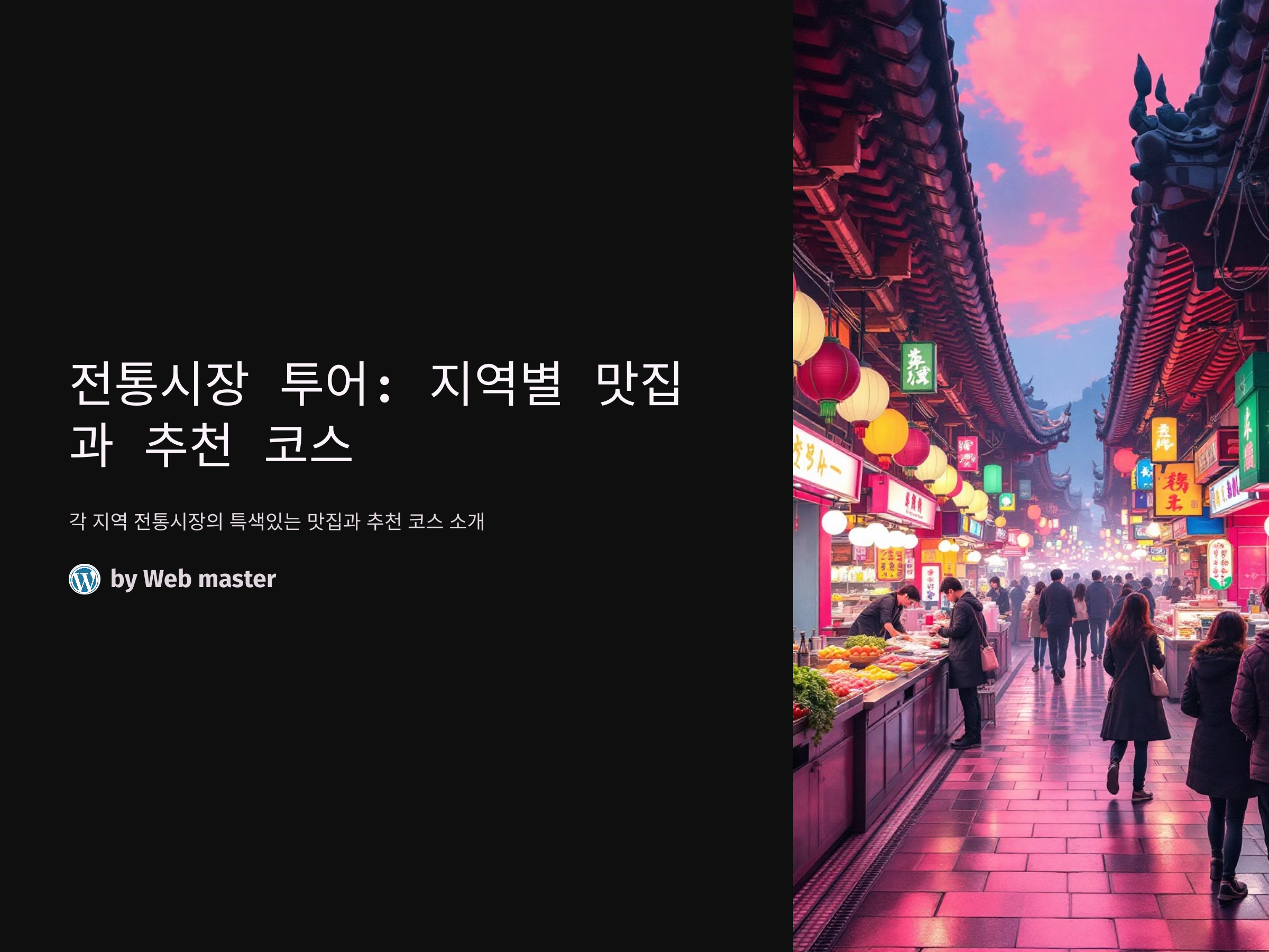 전통시장 투어는 그 지역의 문화와 음식을 직접 경험할 수 있는 소중한 기회입니다. 각 지역별 전통시장에서 맛있는 음식과 즐거운 쇼핑을 동시에 할 수 있으니, 여행의 즐거움을 두 배로 느낄 수 있습니다. 다양한 전통시장에서의 경험을 통해 한국의 맛과 문화를 깊이 있게 이해해보세요.