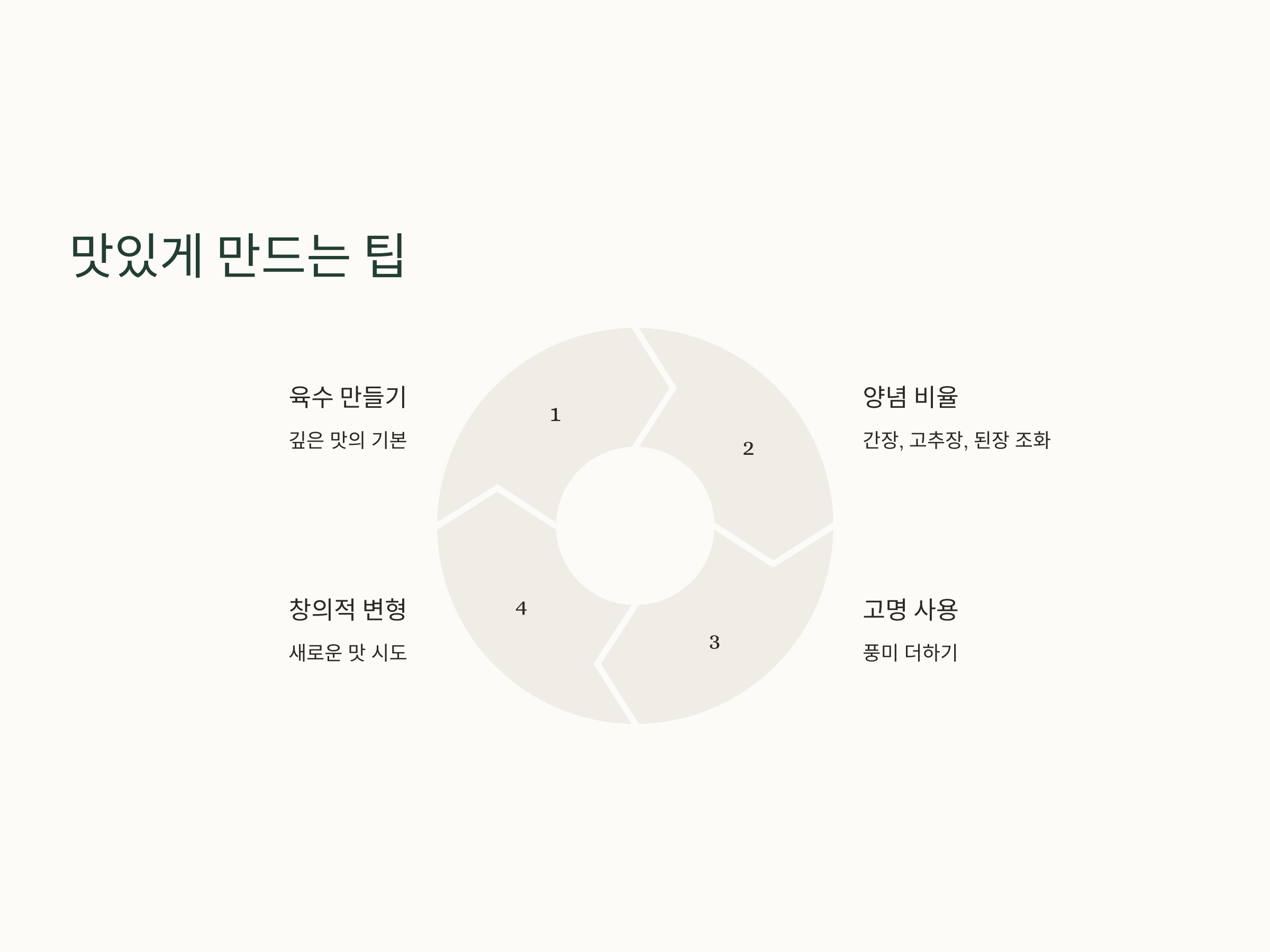 - 꾸준한 연습이 가장 중요합니다. 자주 해보며 자신만의 요리 스타일을 찾아가는 것이 한식 마스터로 가는 지름길입니다.