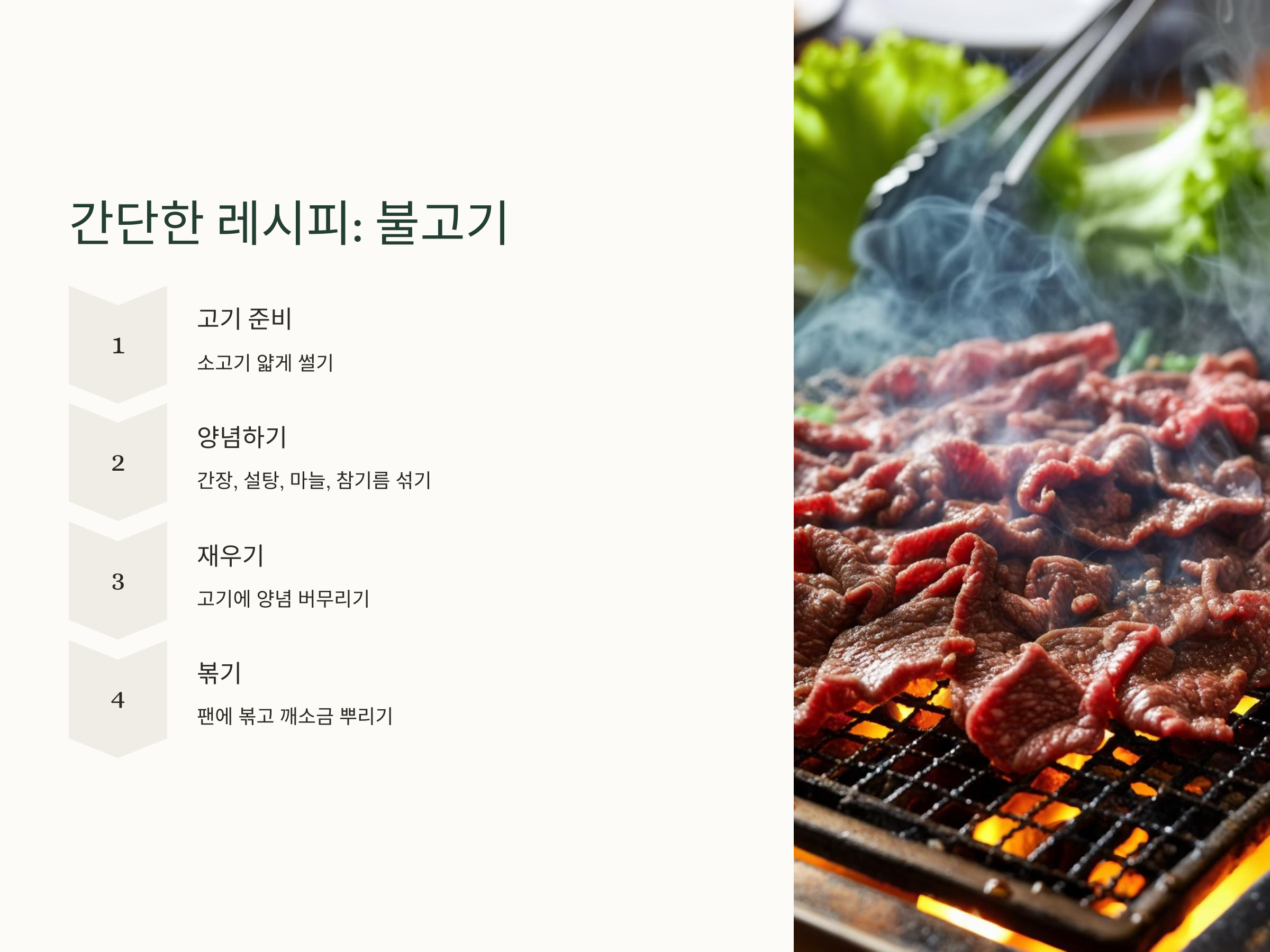 불고기는 한식의 대표적인 고기 요리로, 달콤하고 짭조름한 맛이 특징입니다. 간단한 재료와 조리법으로 집에서도 쉽게 만들 수 있습니다.