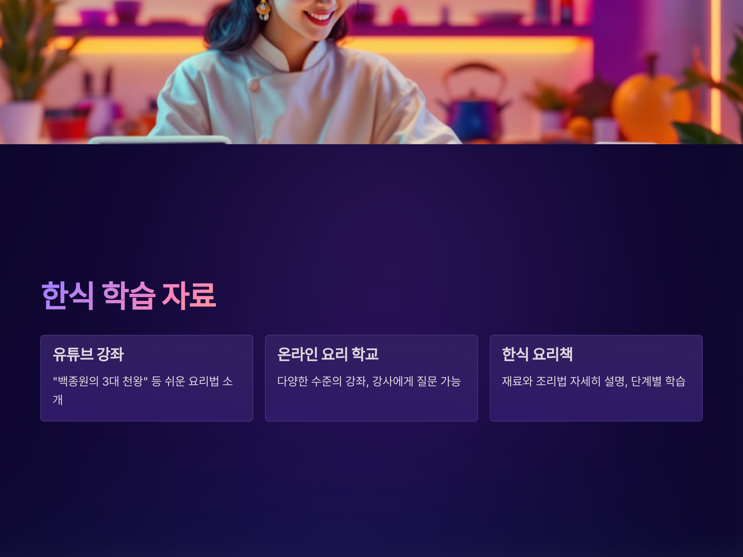 전통 한식 요리를 배우기 위한 유용한 자료들