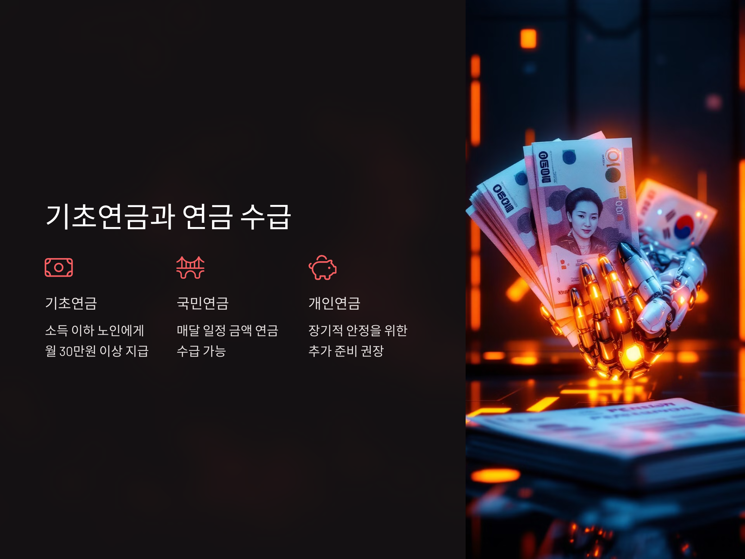 기초연금 외에도 국민연금 수급자들은 매달 일정 금액의 연금을 받을 수 있습니다. 이 외에도 다양한 공적연금 제도가 있으며, 개인적인 노후 대비를 위해서는 국민연금 외에도 개인연금 가입을 고려하는 것이 좋습니다. 국민연금은 자영업자나 기업에 소속되지 않은 사람들도 가입할 수 있는 제도로, 장기적으로 안정적인 생활을 위해 중요한 수단이 됩니다.