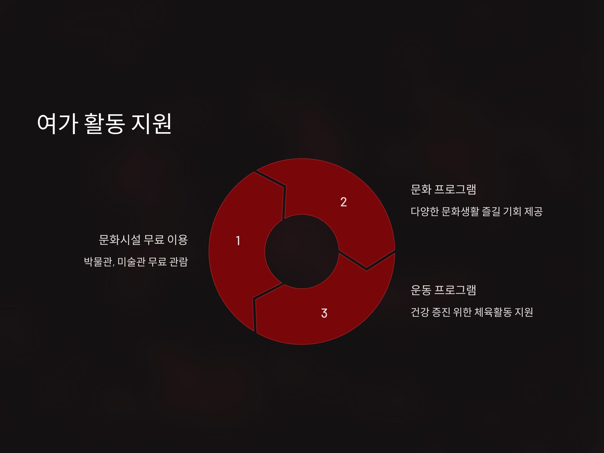노인들이 삶의 질을 높이고 활기찬 생활을 할 수 있도록 정부는 다양한 여가 활동과 문화 혜택을 제공합니다. 예를 들어, 박물관, 미술관, 영화관 등에서 무료로 관람할 수 있는 기회를 제공하거나, 각종 문화 프로그램을 운영하여 노인들이 문화생활을 즐길 수 있도록 돕고 있습니다. 또한, 운동 프로그램을 통해 건강을 증진할 수 있는 기회도 제공됩니다.